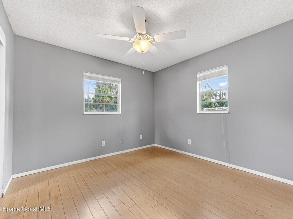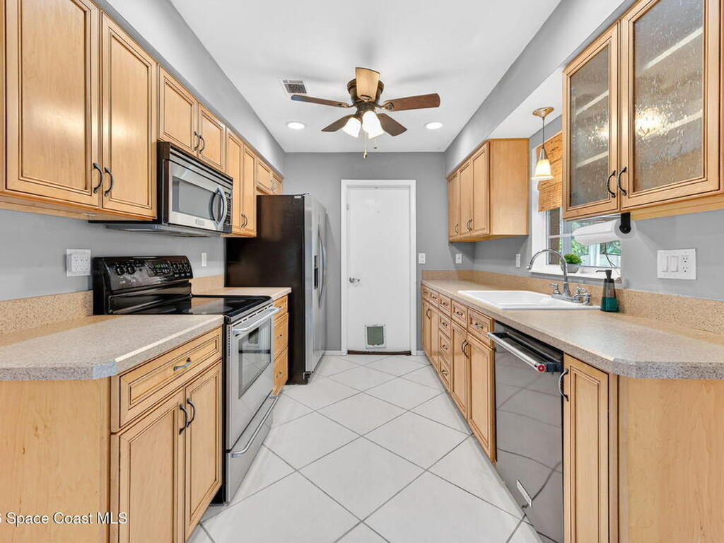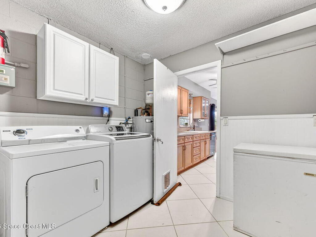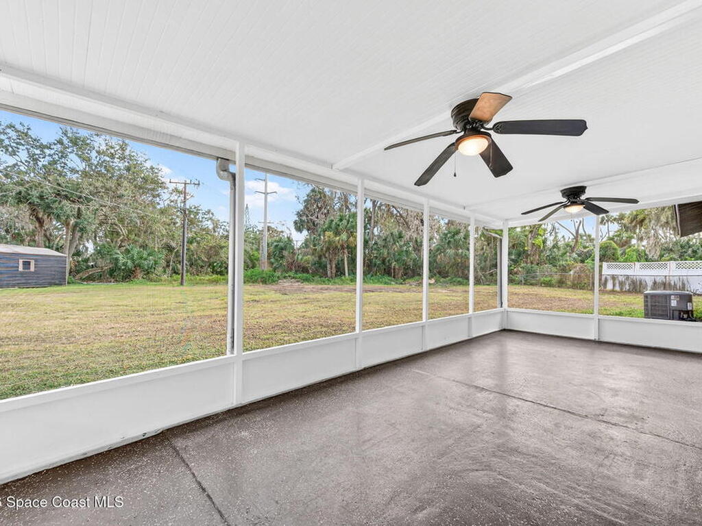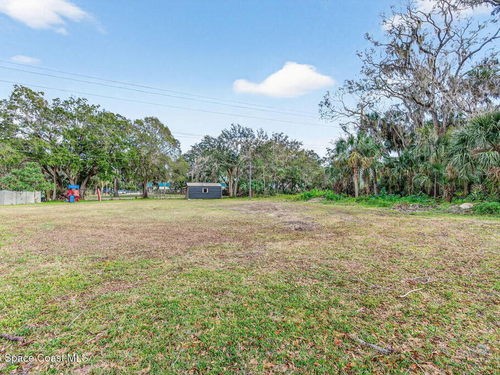 Welcome to this 3 bdrm 2 bath neat clean home w/ an oversize 2 car garage located on almost a third of an acre at the end of quiet dead end street in a cul-de sac. Improvements include new roof shingles in 2020, new HVAC and air ducts in 2021 plus an updated top-tier Cultler Hammer electrical panel, newer hot water heater & all new interior paint on walls, ceilings, doors & trim. The kitchen has also been updated with newer kitchen cabinets & stainless appliances. There is an inside utility room that includes a washer & dryer & a small freezer. The 500 sq ft garage has built-in cabinets & a refrigerator to hold your cold drinks. A 10 x 24 screen porch overlooks a private & expansive back yard with no back yard neighbors. Its a great place for your toys & pets & comes w/ 2 storage sheds near the back of the property w/ no home owner association. No carpet to mess up either!Great starter home just waiting for you in a very nice well maintained neighborhood in central Titusville.