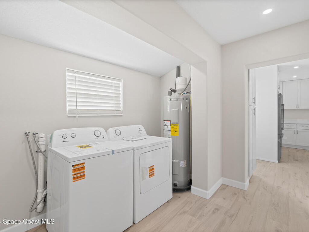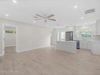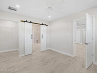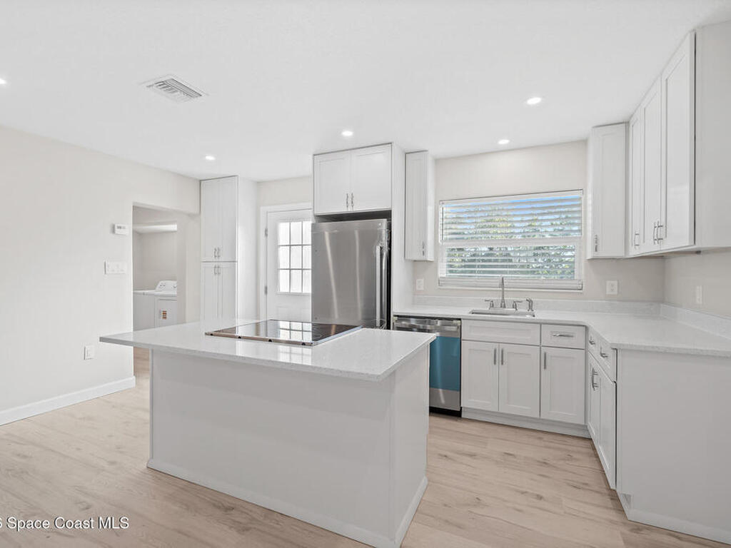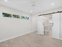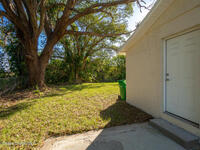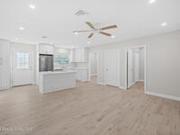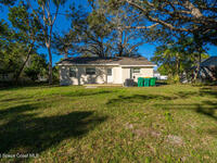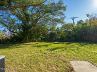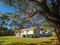 Discover this COMPLETELY RENOVATED 3-bedroom, 1.5-bathroom home, where every detail has been thoughtfully updated for modern living. This fully remodeled residence features a brand-new roof (12/2024), 2025 HVAC & water heater, stainless steel appliances, electrical panel, wood-look vinyl flooring, and beautifully renovated bathrooms.Enjoy the open-concept kitchen with island flowing seamlessly into the living room--perfect for entertaining and family gatherings. Nestled on a private lot surrounded by majestic oak trees and tropical landscaping, relax on the back deck with peaceful pond views and no direct backyard neighbors. A concrete pad in the side yard is ideal for a carport, patio, or grilling area.Whether you're a first-time buyer or seeking your forever home, this turnkey property offers contemporary comfort with natural beauty and NO HOA! Centrally-located in desirable Merritt Island with easy access to beaches, shopping, and dining. Don't miss this rare opportunity!