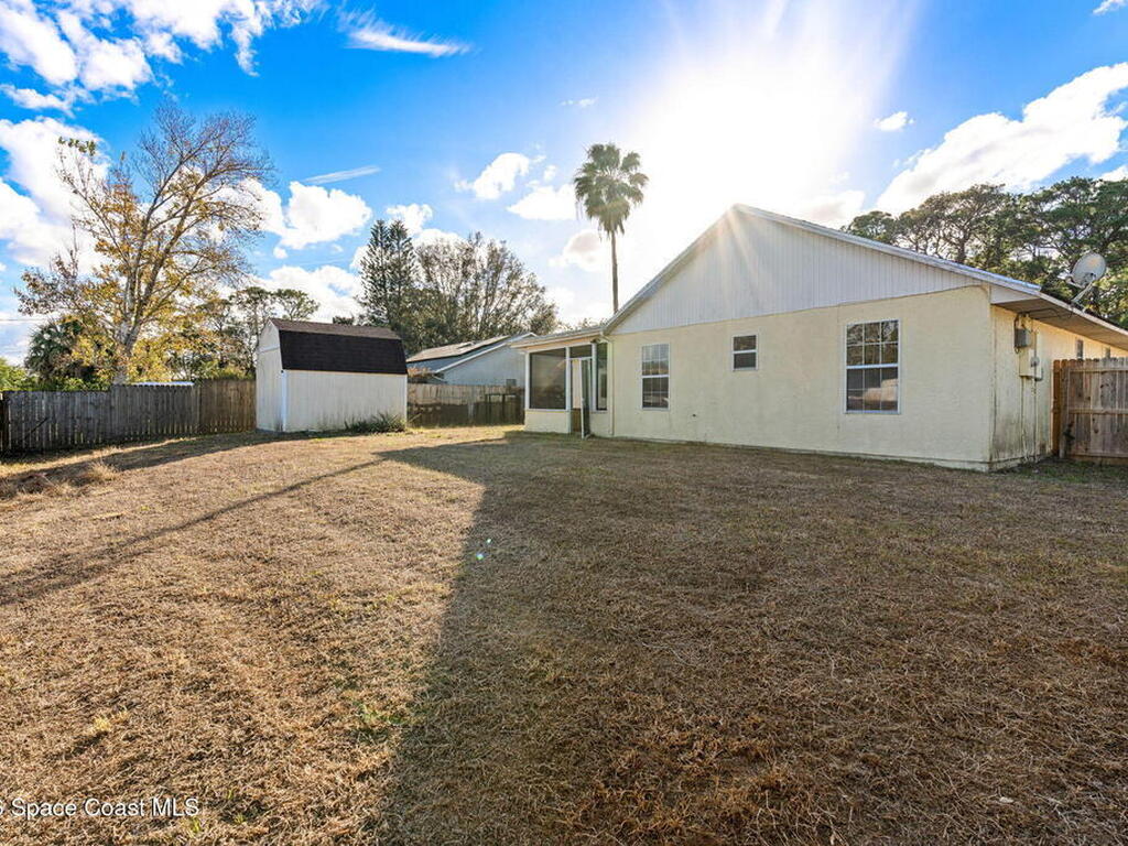 Bank-owned opportunity in NW Palm Bay! This home features vaulted ceilings and a spacious open layout with a large kitchen and living room, plus a separate dining room ideal for everyday living or entertaining. The split bedroom floor plan offers added privacy, while the expansive fenced backyard includes a huge shed for extra storage or workshop space. Notable features include a 2005 roof and 2005 A/C. Conveniently located with easy access to schools, shopping, and major roadways. A great opportunity for buyers or investors--schedule your showing today! This property is being sold as-is, property is lender -owned and U.S. Bank National Association is making no representations or warranties.