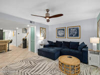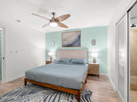 Live the beach lifestyle in this beautifully maintained 3 bedroom, 3 full bathroom half-duplex townhome just 850 feet from the beach, less than a 3-minute walk to the sand. Located at the end of the street near Cherie Down Park with pavilions, grills, two beach accesses and a 320-ft boardwalk, this home is designed for easy coastal living. The flexible layout features two primary suites upstairs, one with a private balcony, plus a first-floor bedroom and full bath with laundry, ideal for guests or shared living. Open kitchen with gas stove, stainless steel appliances, island seating and coffee nook flows into a spacious screened porch with an extra refrigerator, perfect for entertaining. Enjoy true indoor-outdoor living with an outdoor shower, low-maintenance synthetic turf, backyard putting green and cornhole area. Impact windows, no HOA. Offered at $3, 200/month unfurnished with option to be fully furnished for an additional $200/month. Pets considered on a case-by-case basis.