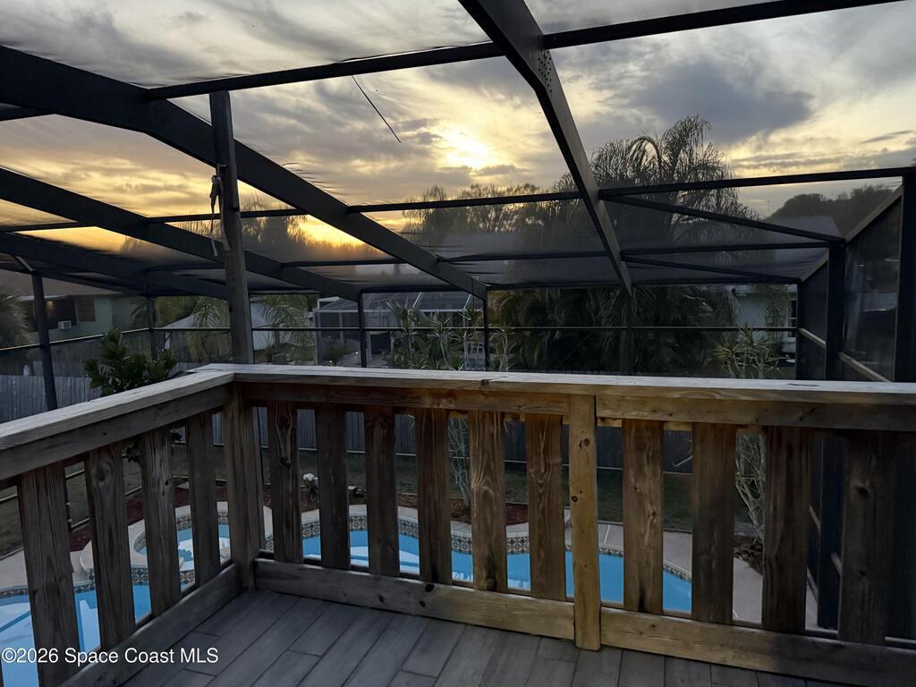 Welcome to Lockmar Estates -- one of Palm Bay's most desirable communities, offering the neighborhood feel everyone loves without the HOA fees or restrictions.Set on nearly half an acre, this property delivers the Florida lifestyle so many dream of, complete with a private pool and spacious, fenced backyard--perfect for entertaining, relaxing, or simply enjoying the sunshine.Inside, you'll find vaulted ceilings, abundant natural light, and a cozy fireplace that creates a warm and inviting atmosphere. The upstairs primary suite features a private deck overlooking the pool, offering the ideal retreat after a long day. The updated bathrooms and Kitchen stylish finishes throughout add a modern touch.Step outside to discover a powered backyard retreat, perfect as an office, creative studio, or personal getaway. And with a newer roof, A/C, 2020 water heater 2025, you can rest easy knowing the big-ticket items are already taken care of.
