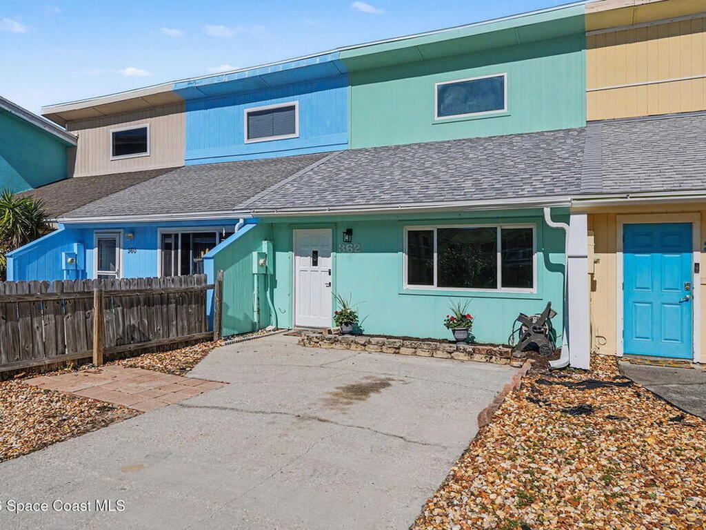 Enjoy coastal living across the street from the ocean in this super clean, move-in ready townhome with no HOA and short-term rentals allowed. Located directly across the street from the beach, this light-filled residence features vaulted ceilings, abundant natural light, and a functional layout with 2 bedrooms and 2.5 bathrooms. Impact windows and doors (2014/2015, plus a hurricane screen at the front door, provide added peace of mind. A new roof in 2025 enhances long-term value. The washer and dryer convey for added convenience. An anchored storage shed on a concrete pad offers space for beach toys, bikes, and gear. Ideal as a primary residence, second home, or income-producing beach retreat, this townhome delivers flexibility, durability, and an unbeatable ocean-side location.