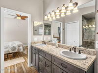 Recently updated and truly move-in ready, this bright and open 4 bedroom, 2.5 bath home offers a comfortable layout with thoughtful upgrades throughout. Soaring cathedral ceilings and abundant natural light create an inviting main living space, complemented by formal living and dining areas and newer tile flooring. The updated kitchen features freshly new cabinetry, granite countertops, a new gas range, upgraded dishwasher, and a charming breakfast nook with built-in bench seating overlooking shady oak trees in the private backyard.The spacious primary suite is conveniently located on the main level and includes a custom walk-in closet, dual sinks, updated shower, and a relaxing retreat feel. Upstairs, you'll find a versatile loft space, two additional bedrooms, and a refreshed guest bathroom, perfect for guests & home office needs.Outside, enjoy a screened front entry, a large screened patio, and a paver backyard patio with plenty of room for entertaining or