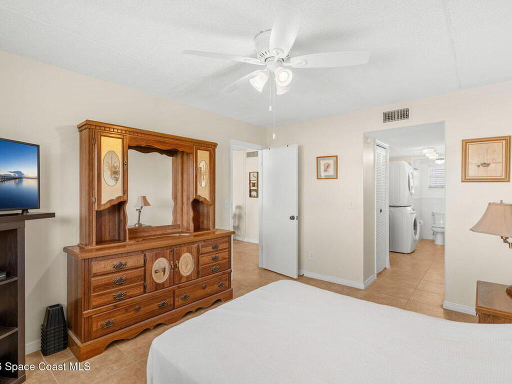 Enjoy easy Florida living in Shady Dell Riverside South, a well-maintained 55+ riverfront community. This bright 1 bedroom, 1.5 bathroom condo features great natural light and a desirable north/east exposure, ideal for enjoying rocket launches. The spacious living/dining combo offers a comfortable layout, complemented by neutral ceramic tile flooring throughout for easy maintenance.The open kitchen provides good flow, while the screened-in porch is perfect for relaxing with a side view of the Indian River. Additional features include a stackable washer and dryer in the unit and ample closet space and storage.The community offers lush green space, picnic areas, and a large pool with clubhouse. One assigned parking space plus plenty of guest parking. Conveniently located near shopping, dining, and with easy access to all major roadways.
