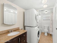 Electric Range, Microwave, Refrigerator, Washer/Dryer Stacked