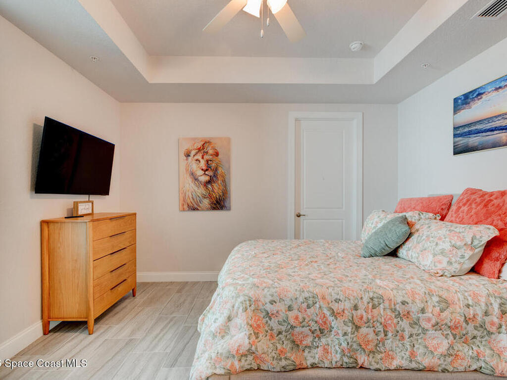 Experience one of the best values in Riverwalk at Coronado in this 2020-built waterfront residence that lives just like new, offering a refined coastal lifestyle enhanced by serene, calming water views from both the primary bedroom and the private balcony. Elevated three floors above sea level, this two bedroom, two bathroom residence combines modern construction with thoughtful upgrades and a peaceful setting overlooking the wide stretch of Smyrna Creek, and the tranquil backdrop of passing boats, wildlife, and evening sky reflections that make this location so special. Inside, the entire unit has been finished with beautiful wood grain tile flooring, including both bedrooms and the balcony, creating a seamless, low maintenance living environment that is ideal for full time or seasonal enjoyment