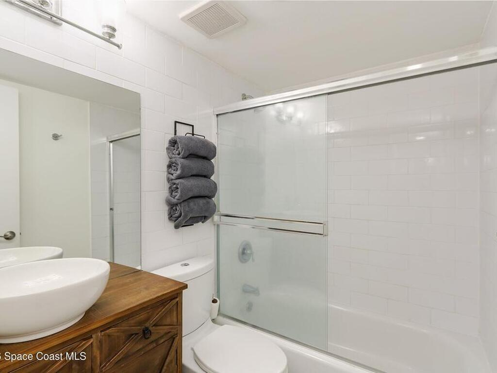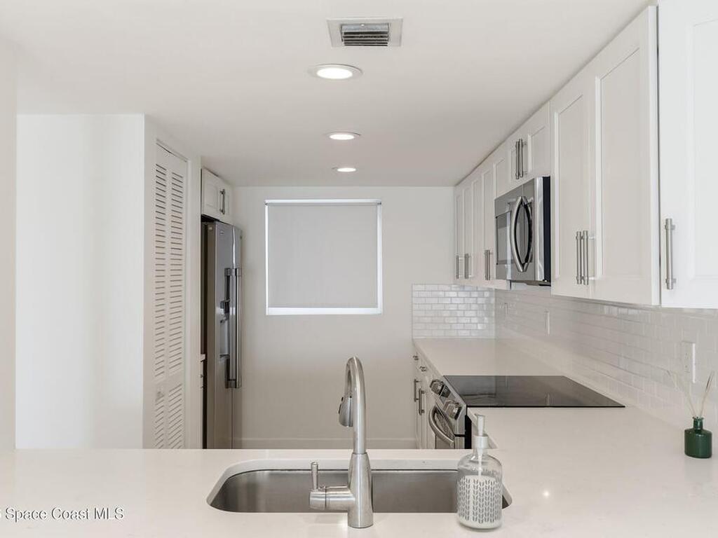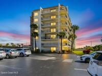 Beautiful Direct Oceanfront Condo with remodeled kitchen and bathrooms. Spectacular DIRECT OCEAN VIEWS from this 4th floor updated condo. The bright and open kitchen features soft close cabinetry, beautiful counter tops, large basin sink w/ disposal, and updated stainless steel appliances with a slide in range and refrigerator with in-door water/ice dispenser. Solid surface flooring with large tile and wood look vinyl. Oceanfront primary suite with ensuite bathroom and walk in closet. Guest bedroom has beautiful sunset views. The residence also features updated impact slider doors and windows. You can see the launch pads providing spectacular rocket launch viewing! Private, 1-car garage plus ample guest parking onsite. You are steps from restaurants and shops from this desirable community that features resort-style amenities including a heated pool, gas BBQ grill, tennis, pickleball, beach access, clubhouse, exercise room, sauna, and an onsite manager. Click for more...