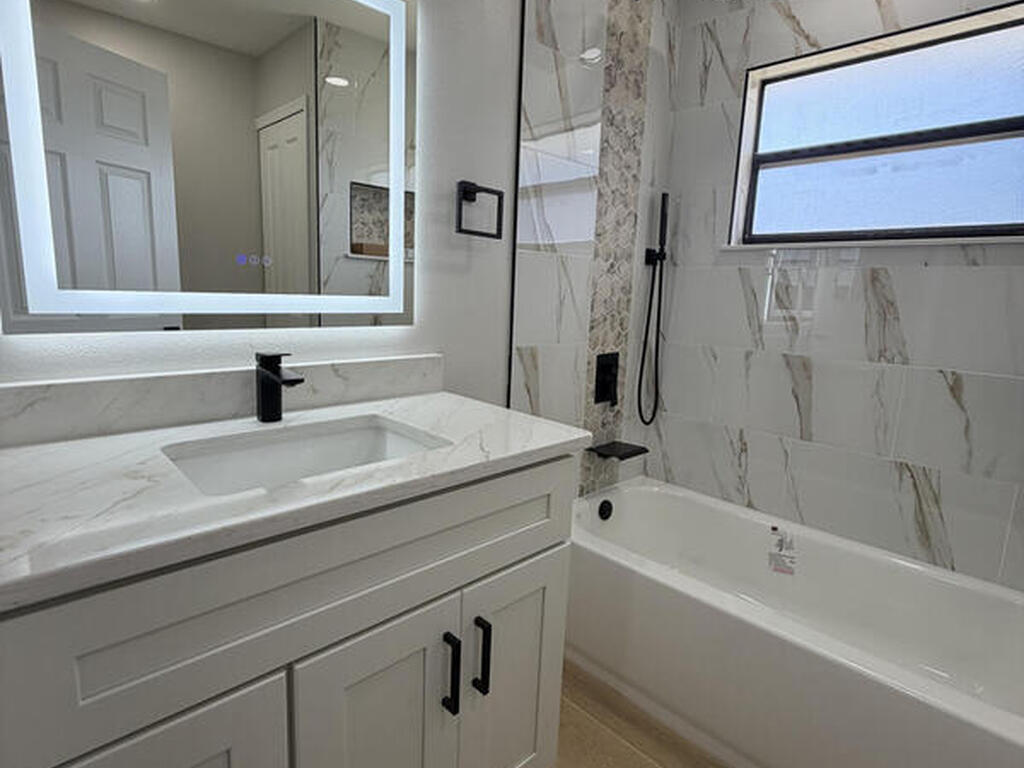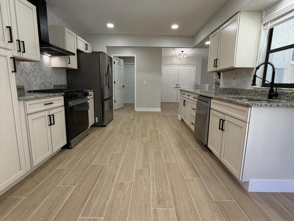 Completely updated and move in ready pool home in Levitt Park, with a large lot on a cul-de-sac. Wood look tile flooring throughout the whole home, LED lighting, updated bathrooms, and kitchen with brand new appliances including a gas stove. Master en suite offers two closets, resort style vanity and mirror, and slider out to the pool deck. Brand new roof, brand new AC, fenced in back yard, Ring doorbell, washer and dryer included, and the owner will include lawn maintenance. Apply here: https://apply.link/rlDQR30