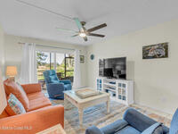 Welcome to this immaculate FIRST FLOOR, FULLY FURNUSHED condo offering 2 bedrooms, 1.5 baths, and 1, 195 square feet of thoughtfully designed living space. Move-in-ready home is ideal for effortless Florida living or a perfect seasonal retreat.The bright, open layout flows seamlessly to a screened-in patio, where you can relax and enjoy peaceful privacy with open field views--no rear neighbors. Located in a well-maintained community with a pool, this condo offers both comfort and convenience. You're just minutes from grocery stores, shopping, and everyday essentials, making daily errands a breeze.Whether you're looking for a full-time residence, vacation getaway, or investment opportunity, this pristine condo checks every box--privacy, location, beaches, space launches and turn-key convenience.