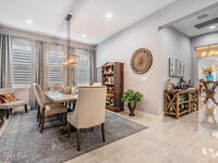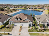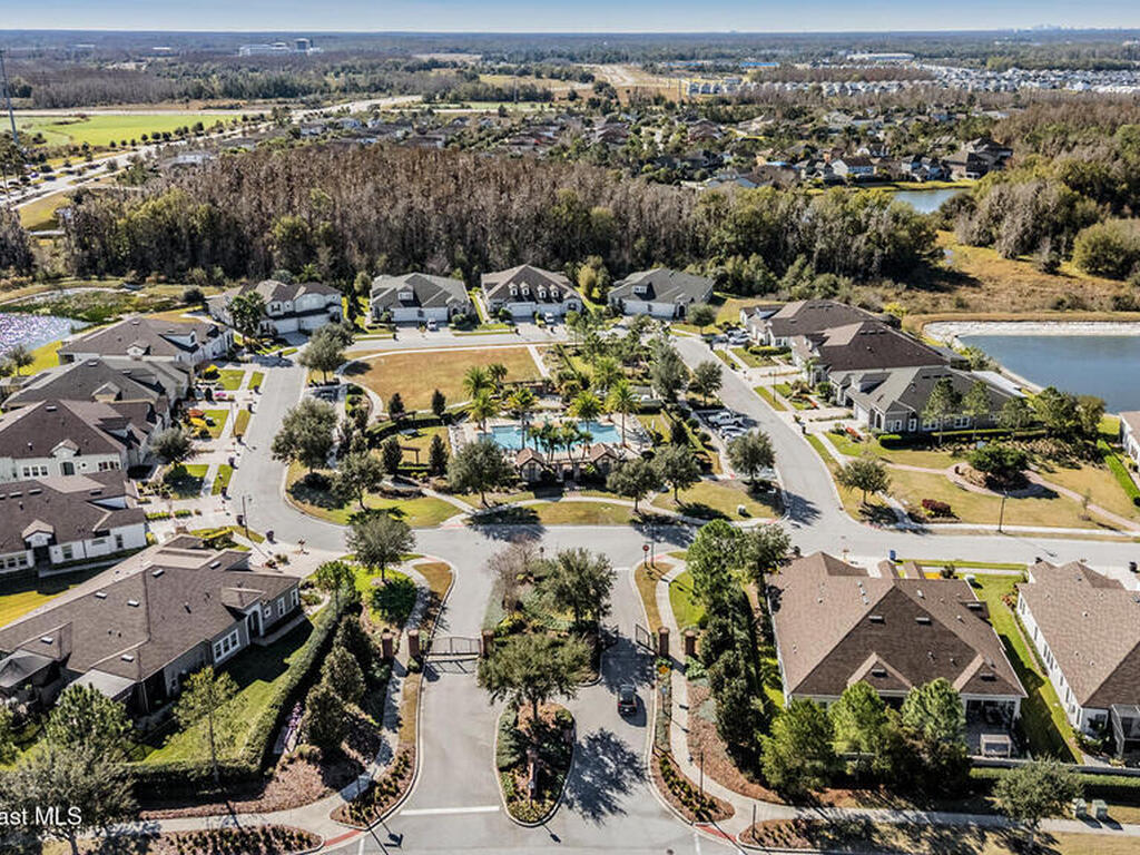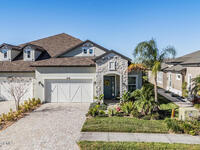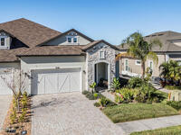 Enjoy peaceful pond views from this beautifully designed luxury villa located in the exclusive gated village of Santeri at Estancia at Wiregrass. This single-family attached home offers elegant, low-maintenance living in one of the area's most desirable communities. The home features 2 spacious bedrooms, 2 full bathrooms, an open living and dining area, and a large two-car garage. An open-concept layout seamlessly connects the kitchen, dining, and living areas, creating a welcoming space for entertaining or relaxing. High ceilings and refined finishes enhance the home. The kitchen offers ample workspace with beautiful cabinetry, modern appliances, and a large pantry. The owner's suite provides a serene retreat with generous space and a spa-like en-suite bathroom featuring dual vanities, a spacious walk-in shower, and a large walk-in closet with custom built-ins. Step outside to the screened-in lanai with pavers and take in the tranquil pond views. This home is a must-see!