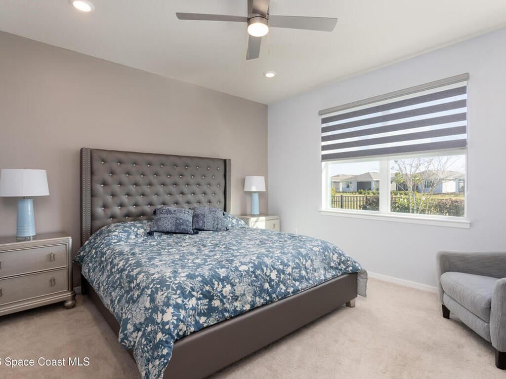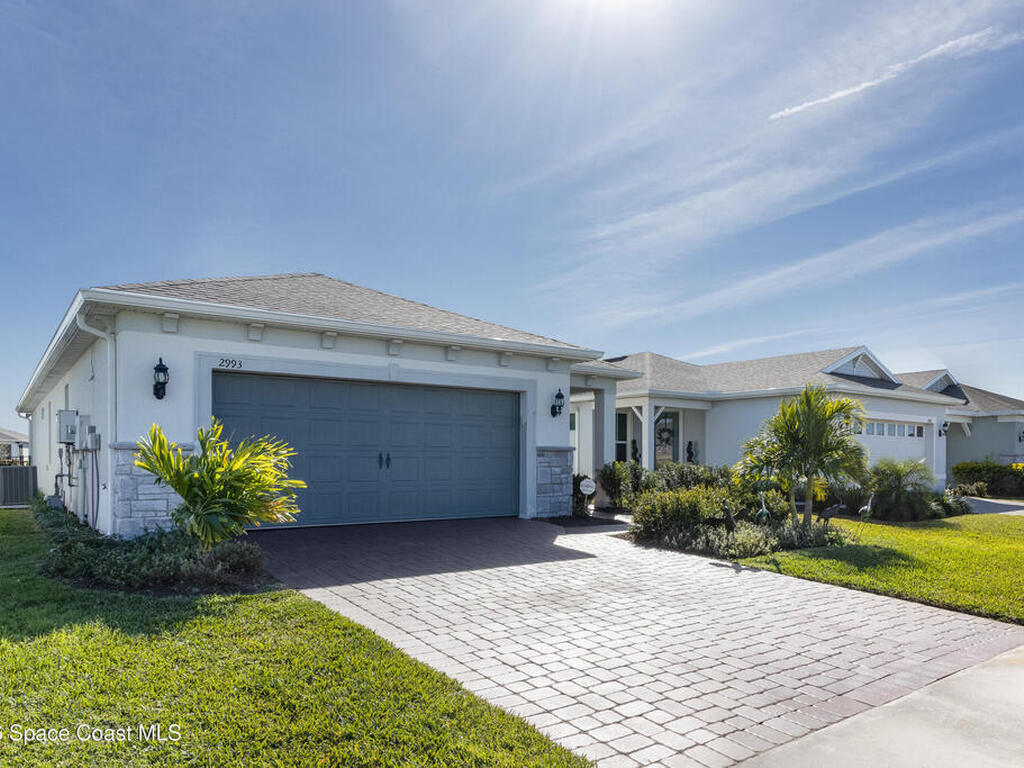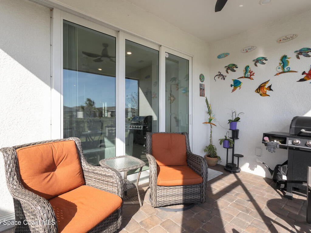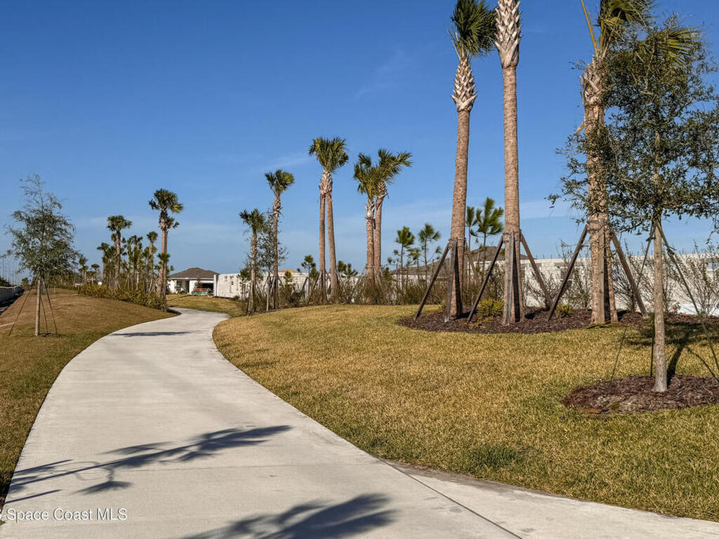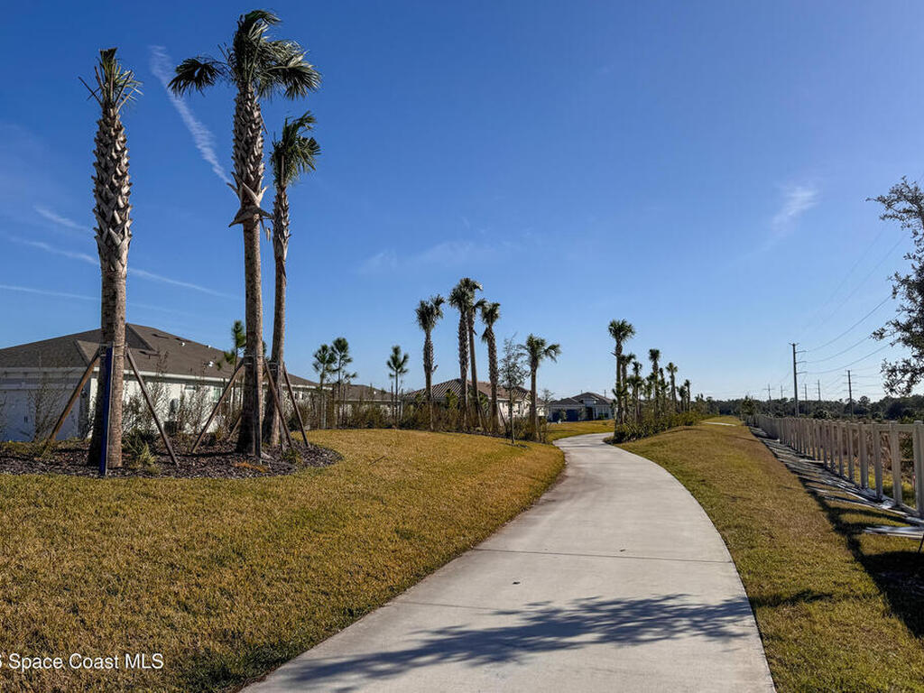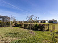 Move in ready! 2023 Hallmark. Exterior enhancements include redesigned front landscaping, additional palm trees, installed gutters, fenced backyard and a professionally screened back patio. Inside, the home features granite kitchen countertops fresh paint, a remodeled guest bathroom with a walk-in shower, and ceiling fans in every room. The garage offers epoxied floor with ample storage, while the laundry room boasts six cabinets and a countertop workspace. HOA fees are $355 monthly, covering landscaping and future amenities including a walking trail, 2 dog parks, tennis / pickle ball courts, Tavern & Grill, Gym, Pools, Outdoor concert venue, Duran Golf Course Membership. The neighborhood is wonderful, with friendly and respectful neighbors who foster a strong sense of community. Monthly block parties at the lifestyle house create a welcoming environment, making it a peaceful and desirable location.