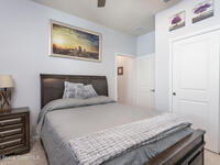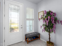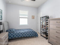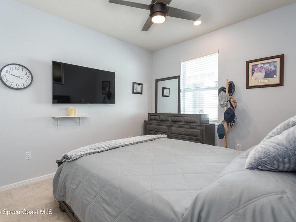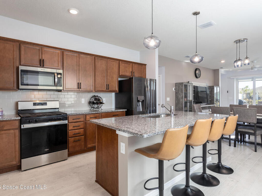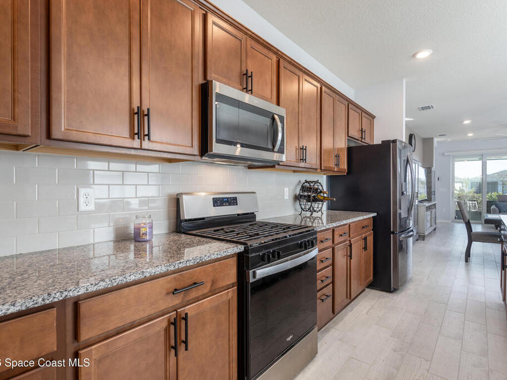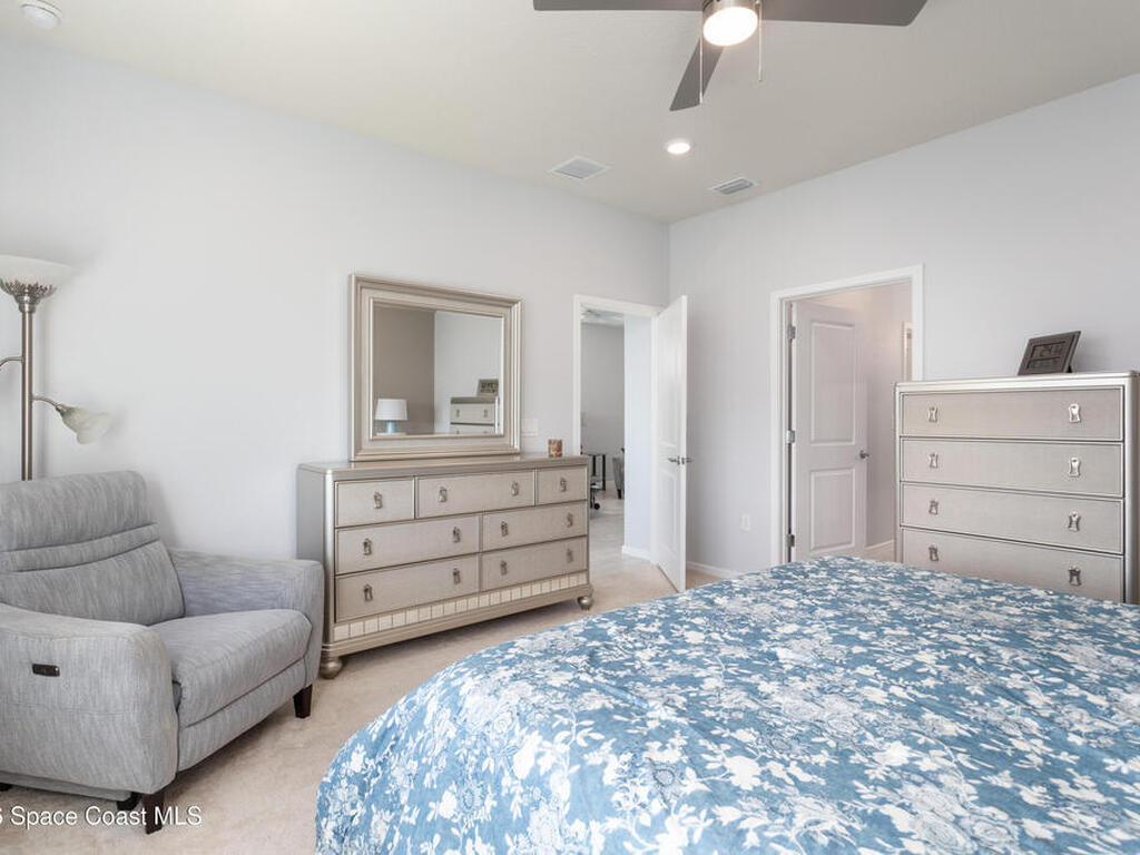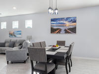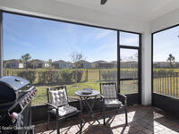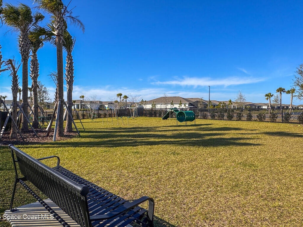 Move in ready! 2023 Hallmark. Exterior enhancements include redesigned front landscaping, additional palm trees, installed gutters, fenced backyard and a professionally screened back patio. Inside, the home features granite kitchen countertops fresh paint, a remodeled guest bathroom with a walk-in shower, and ceiling fans in every room. The garage offers epoxied floor with ample storage, while the laundry room boasts six cabinets and a countertop workspace. HOA fees are $355 monthly, covering landscaping and future amenities including a walking trail, 2 dog parks, tennis / pickle ball courts, Tavern & Grill, Gym, Pools, Outdoor concert venue, Duran Golf Course Membership. The neighborhood is wonderful, with friendly and respectful neighbors who foster a strong sense of community. Monthly block parties at the lifestyle house create a welcoming environment, making it a peaceful and desirable location.