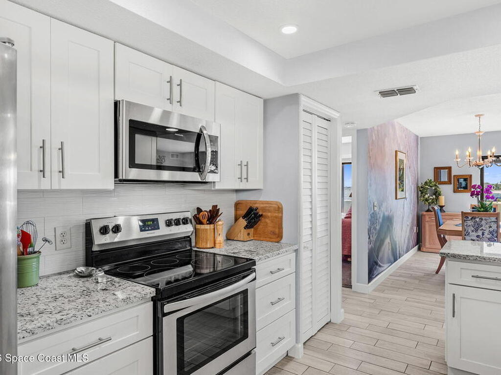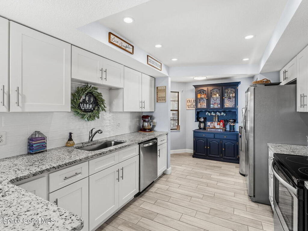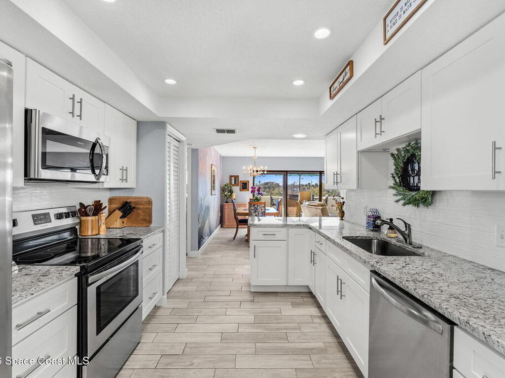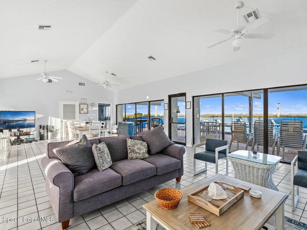 Experience a truly unique riverfront lifestyle at Rhum Cove, a gated waterfront community offering a private marina with deeded boat slips -- all at an exceptional value. This sought-after complex delivers a yacht-club feel with amenities including a waterfront pool, pickleball courts, fitness center, sauna, clubhouse, dock, and secure gated entry.This desirable southwest-corner unit features 3 bedrooms and 2 bathrooms with expansive river views and stunning sunsets. Interior highlights include wood-look tile flooring, granite countertops, quad sliding glass doors, a recently renovated bathroom, in-unit laundry, and a 1-car garage. Additional updates include a 2019 A/C with UV system, 2024 water heater, and roll-down shutters for added comfort and protection.All pending assessments have been paid by the seller, offering peace of mind for the next owner. Whether you're a boater, river enthusiast, or simply seeking a lock-and-leave waterfront lifestyle this is a cannot miss!