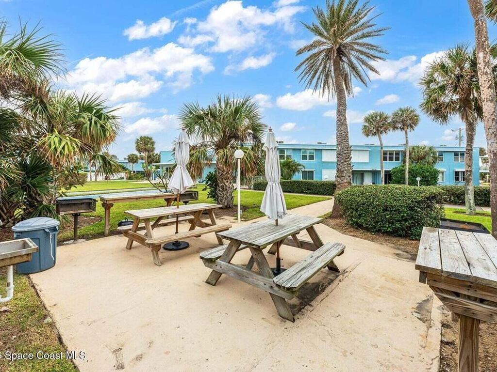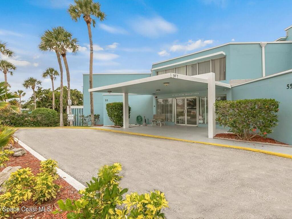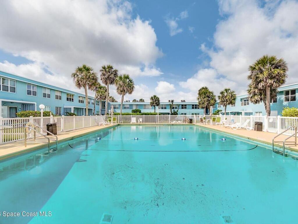 Wake up to ocean breezes in this 2nd story, 1 bed, 1 bath 614 sq ft condo ideally located directly across from the ocean! Just steps to the sand & Seagull Park, this light & airy retreat offers the perfect blend of coastal living & convenience. Enjoy flexible minimum 3-month rentals, ideal for seasonal residents or investors. Situated appr. 20 min to Melbourne Intl Airport & 45 min to Orlando International Airport, with easy access to world-famous Orlando attractions, local shopping & dining. Whether you're seeking a relaxing beach escape or a smart investment opportunity, this condo delivers location, lifestyle, & value. Close to A-rated schools; This unit needs TLC, offering a totally blank canvas to personalize & add value. Community amenities include a resurfaced Olympic-sized pool, shuffleboard, bbq area; Low fees of $344 incl water, sewer, trash, ext. insurance, cable; Roof 2023; Water heater & A/C 2017; Super easy to show!