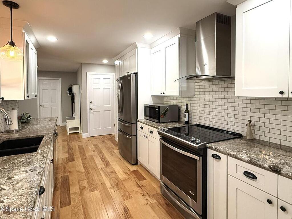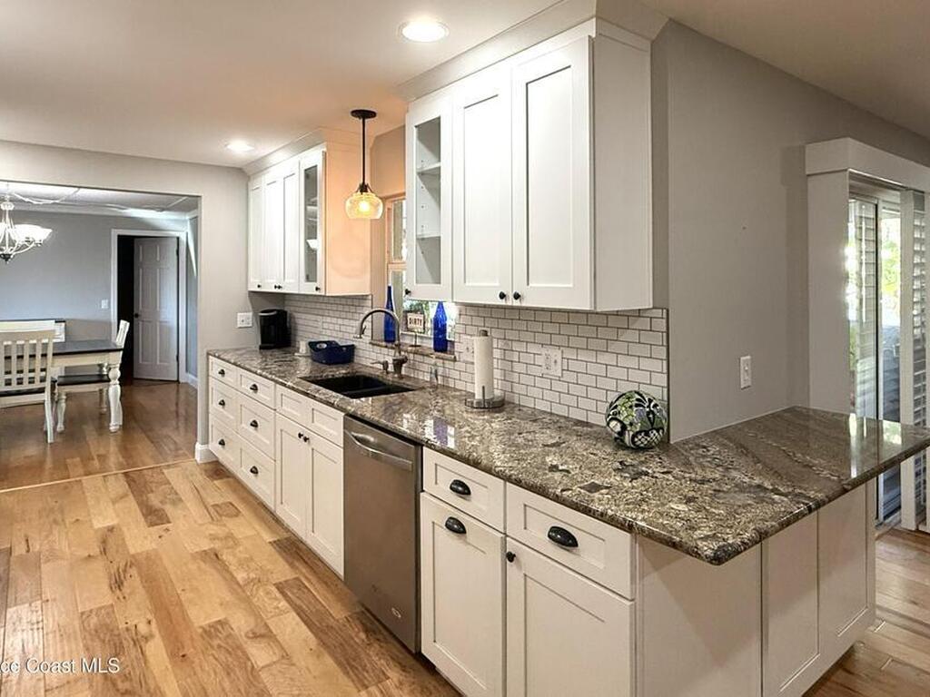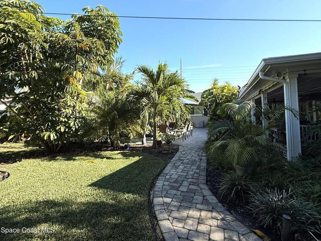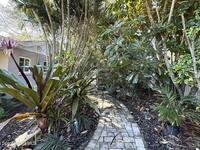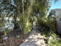Welcome to a Gardener's Paradise. Discover this beautifully 4-bed, 2.5-bath home, perfect for plant enthusiasts. Stroll along paver pathways shaded by mature oaks and palms, and enjoy a spacious 12x40 covered porch, ideal for relaxing or propagating your favorite plants. Two sheds provide ample storage for gardening tools and outdoor equipment. This storm-ready home offers peace of mind with a new roof (Nov 2019), updated AC and ductwork (Dec 2019), and impact windows and doors (2021). The property is wired for a portable generator, ensuring you can power everything except the AC during outages. All this makes for affordable insurance. Fresh exterior paint (July 2025) and newer interior finishes create a welcoming atmosphere. Step inside to a modern kitchen updated in 2016, featuring granite and stainless appliances. Hardwood floors flow through most of the home and plantation shutters adding warmth and elegance. Ample parking, Indoor laundry. Enjoy beachside living at its Best!!