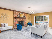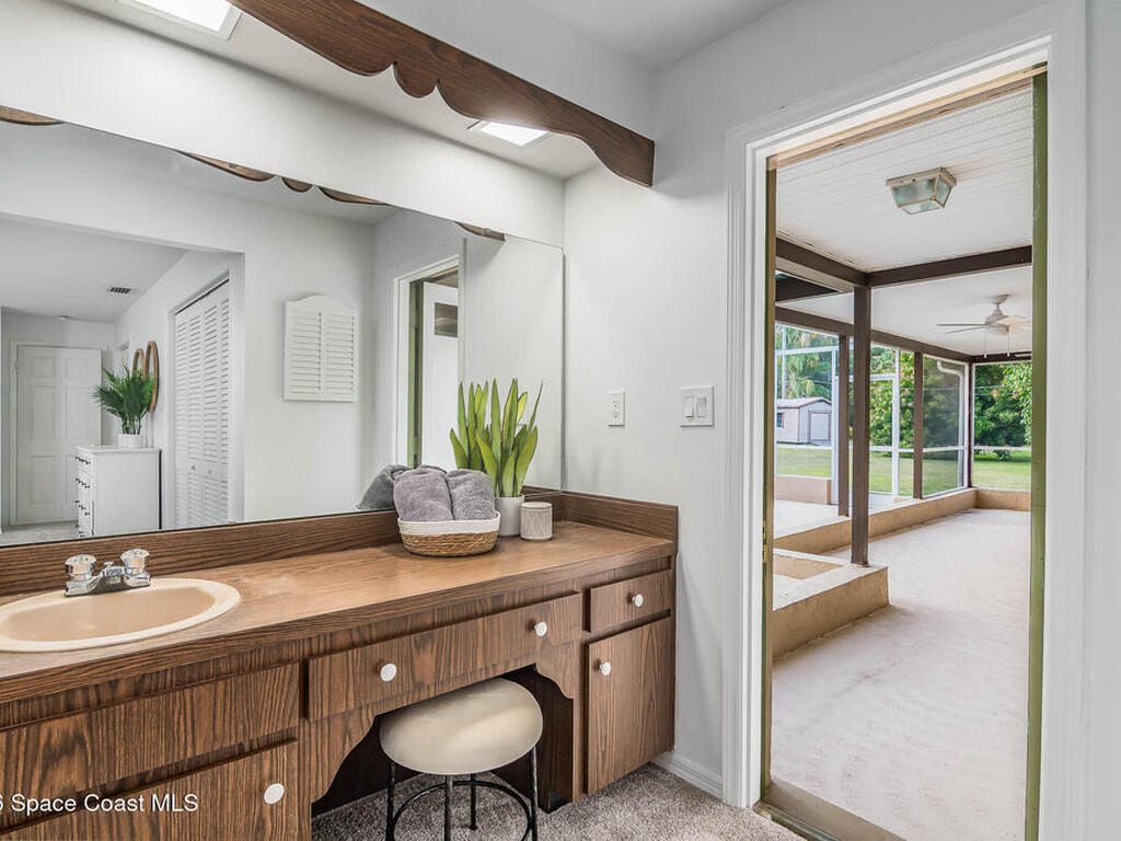 Welcome to this unique deiscovery in South Merritt Island's Hilltop Manor! This well-maintained 4-bedroom, 2-bath home sits on over half an acre at the end of a peaceful cul-de-sac. Inside, you'll find a cozy living room with a brick wood-burning fireplace and sliding doors opening to a spacious screened pool. Outdoors, enjoy lush landscaping shaded by mature mango trees. With updated PVC drain lines (2025) and no HOA, this inviting retreat is waiting for you--just minutes from island amenities!