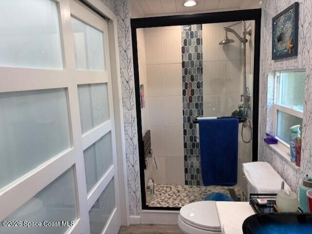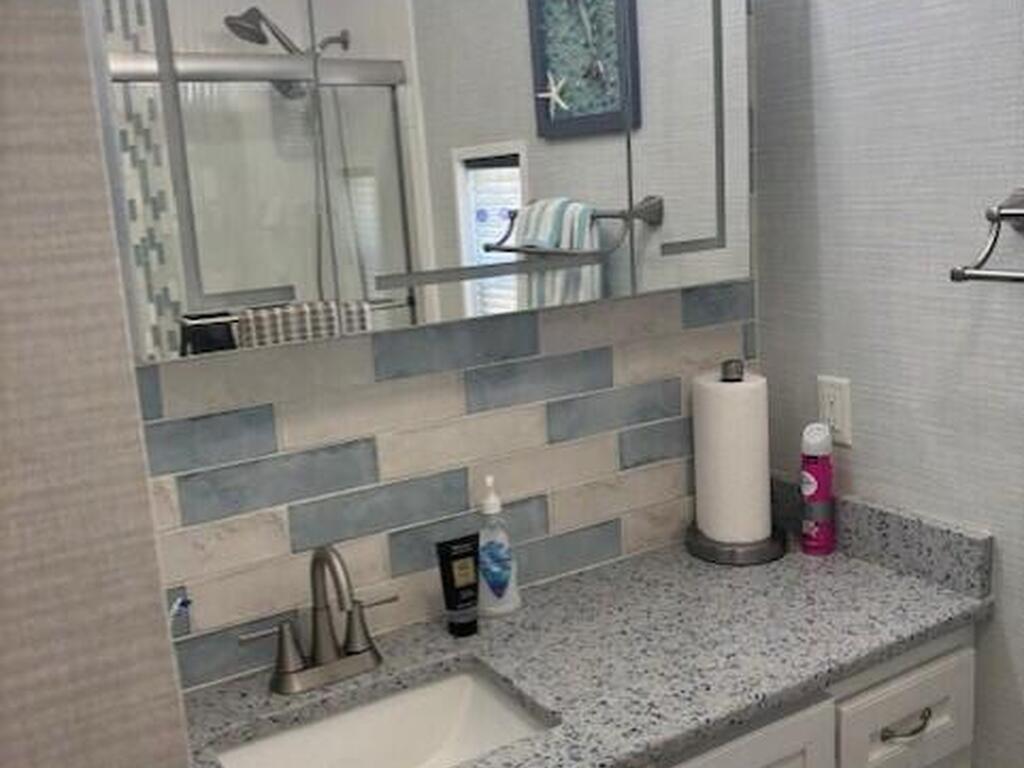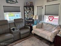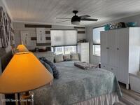 This property has been completely remodeled with all the high end finishes you will love and is ready for you to enjoy Florida resort living seasonally or year round. No detail has been spared in the kitchen and two full bathrooms. From the sinks and tile and finishes in the bathrooms and the kitchen has everything a cook would want, including a built in coffee bar. The primary bedroom has lots of light and storage and easily fits a king sized bed. Enjoy covered patio with composite deck in the front or the paver patio in the back ready for barbecue. This active 55+ community has an executive golf course, heated pool, tennis, pickleball, activities and more. Located in North Brevard county and close to airports, beaches, shopping and theme parks.