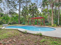 You have just found your new 3 bedroom 2 full bath pool home located on a cul-de-sac. This wonderful home sits on 1.86 Acres of land. It is zoned for horses, goats and other critters. Features include; Newer Heating and Air Conditioning 2025, Chimney Cap 2025, updated primary bath, remodeled kitchen, new instant tankless water heaters in kitchen and bath, pool pump 2024, laminated floors 2014, roof 2013, solar tube 2013, septic pumped a few years ago, newer interior / exterior paint, Fenced for horses, goats, and chickens, Pond with artesian well Water is low right now. it's been really dry), inground pool with a cabana, fire pit, Huge covered and screened in back porch, and a free standing shed. The lot is fairly level with a nature trial around the property. Enjoy the birds and critters that frequently visit this wonderful property. Close to Highway, Airports, dining, Schools, dining and entertainment.