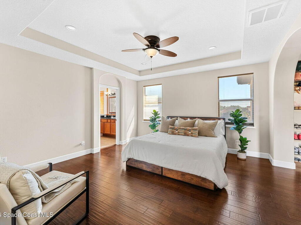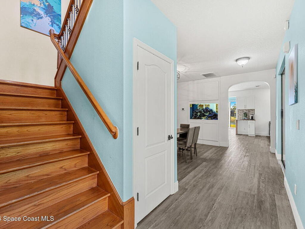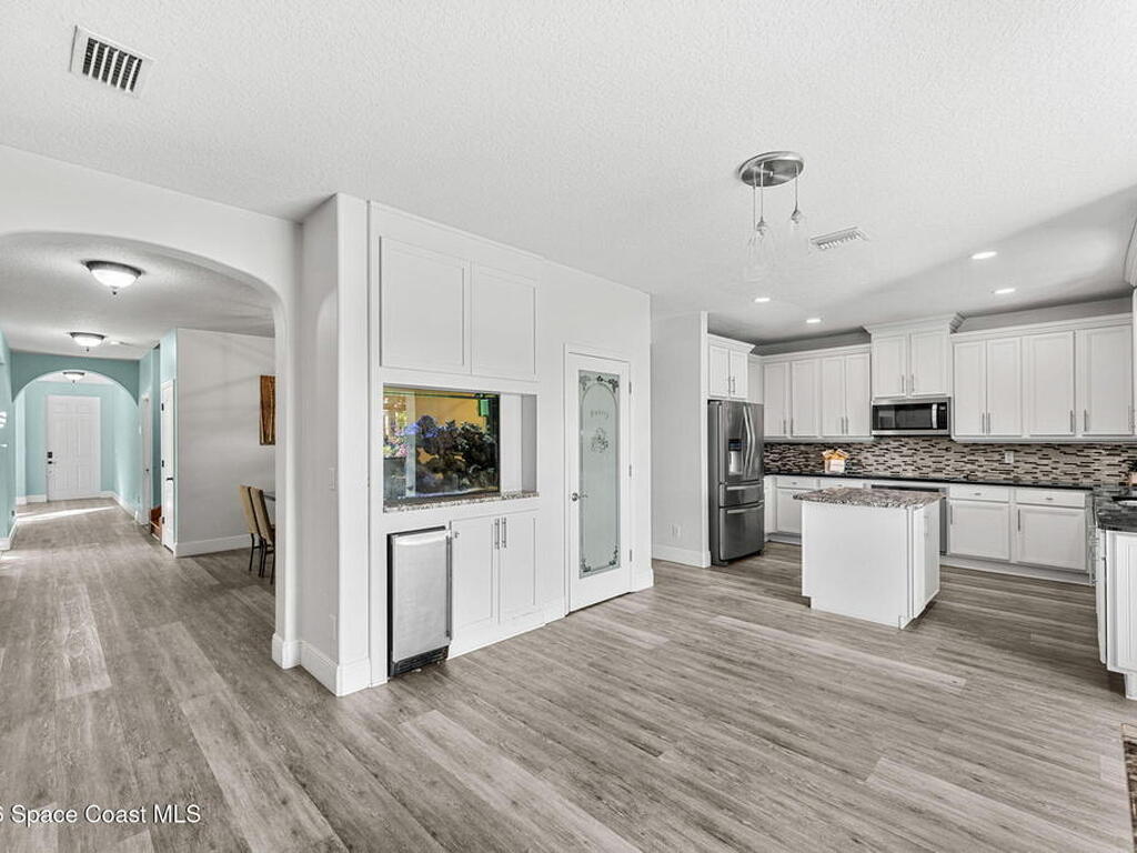 With approx. 4, 005 sq ft, this expansive Montecito home delivers space, flexibility, & a layout designed to truly work for everyday living. The first floor offers multiple defined living areas including a formal living room, dining room, & a spacious family room, all finished w/ durable LVP flooring. The kitchen opens to an oversized flex room featuring built-in cabinetry, space for a second refrigerator, a dedicated mini split, & a striking 150-gallon aquarium. A 1st-floor bedroom & full guest bath add convenience for guests or multi-generational living. Upstairs, wood floors lead to a generously sized primary suite w/ a bright bath, adjoining flex space ideal for a gym or office, & a private balcony overlooking the courtyard. A Bonus room with carpet, three additional bedrooms, a full guest bath with dual sinks, & an upstairs laundry room complete the second level. Outdoor living includes multiple pergola-covered patios, summer kitchen, a spacious backyard, & tranquil pond views.