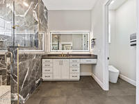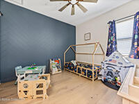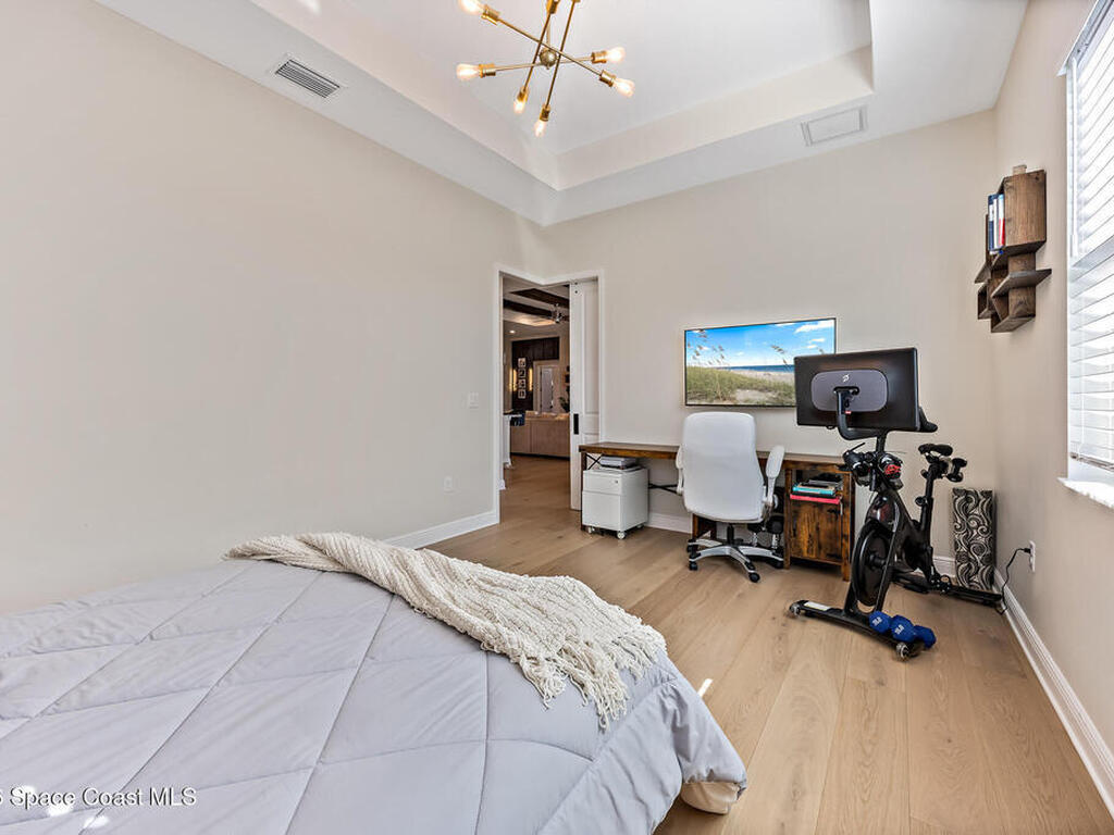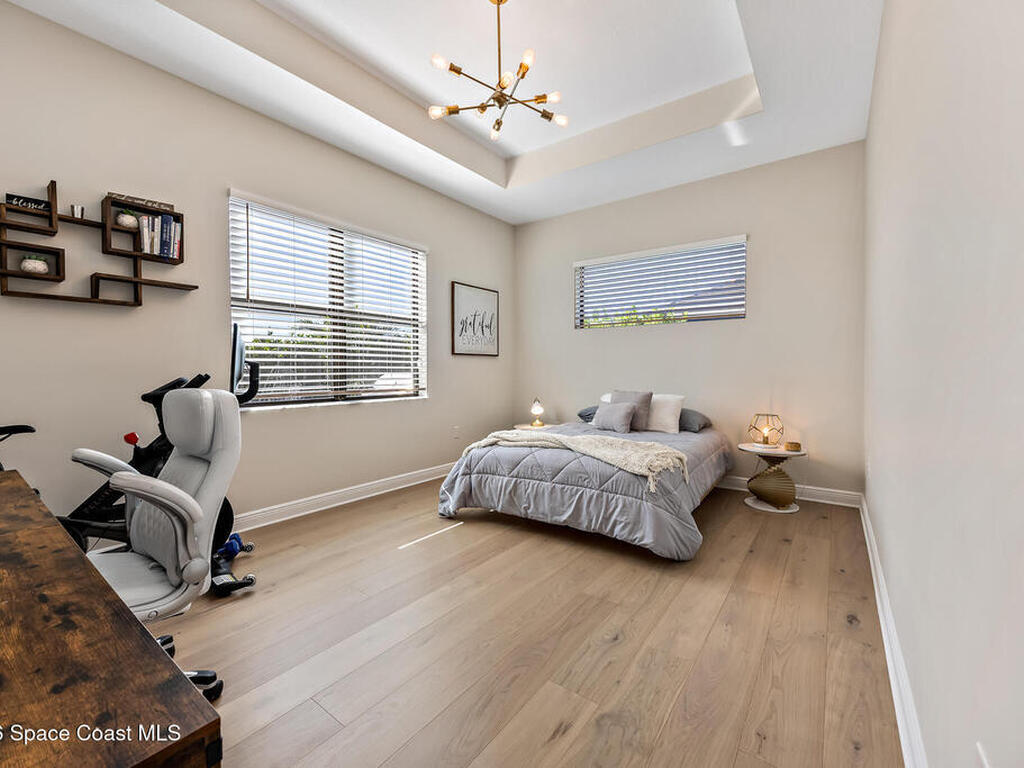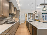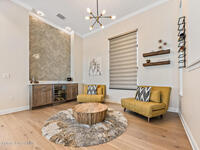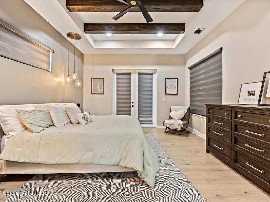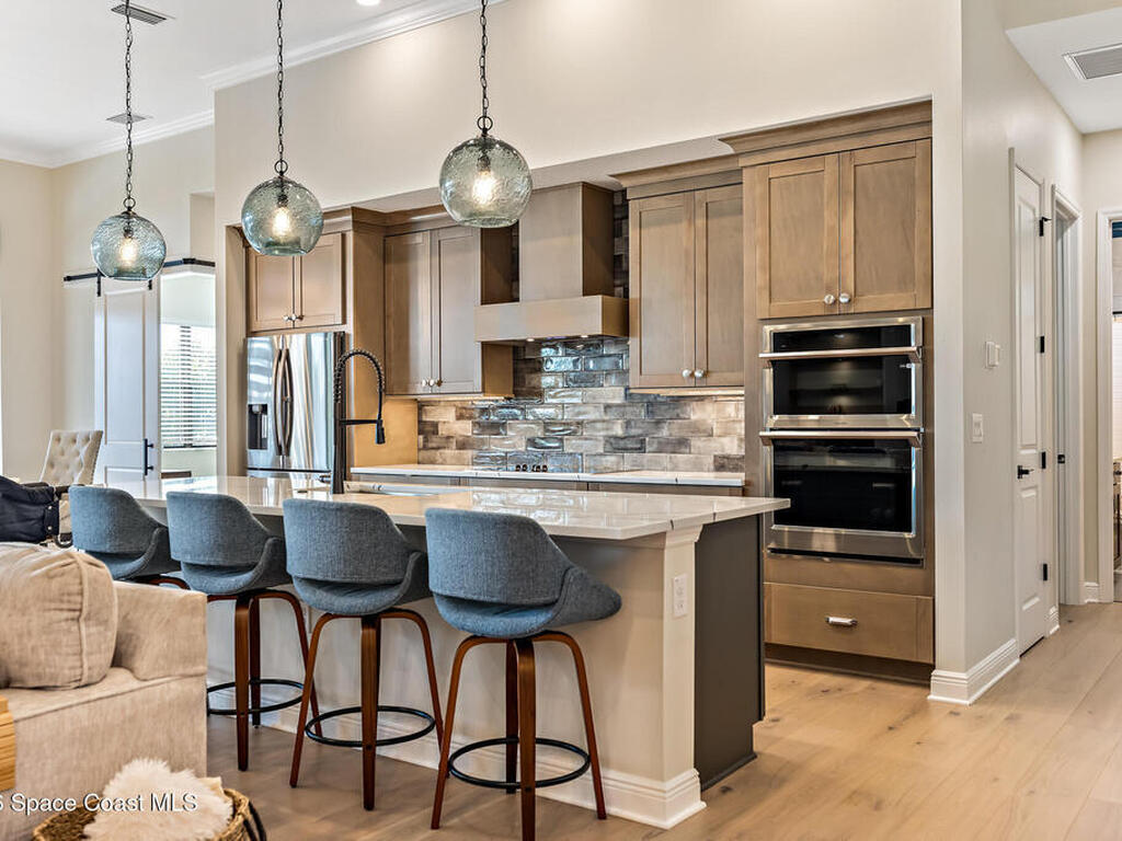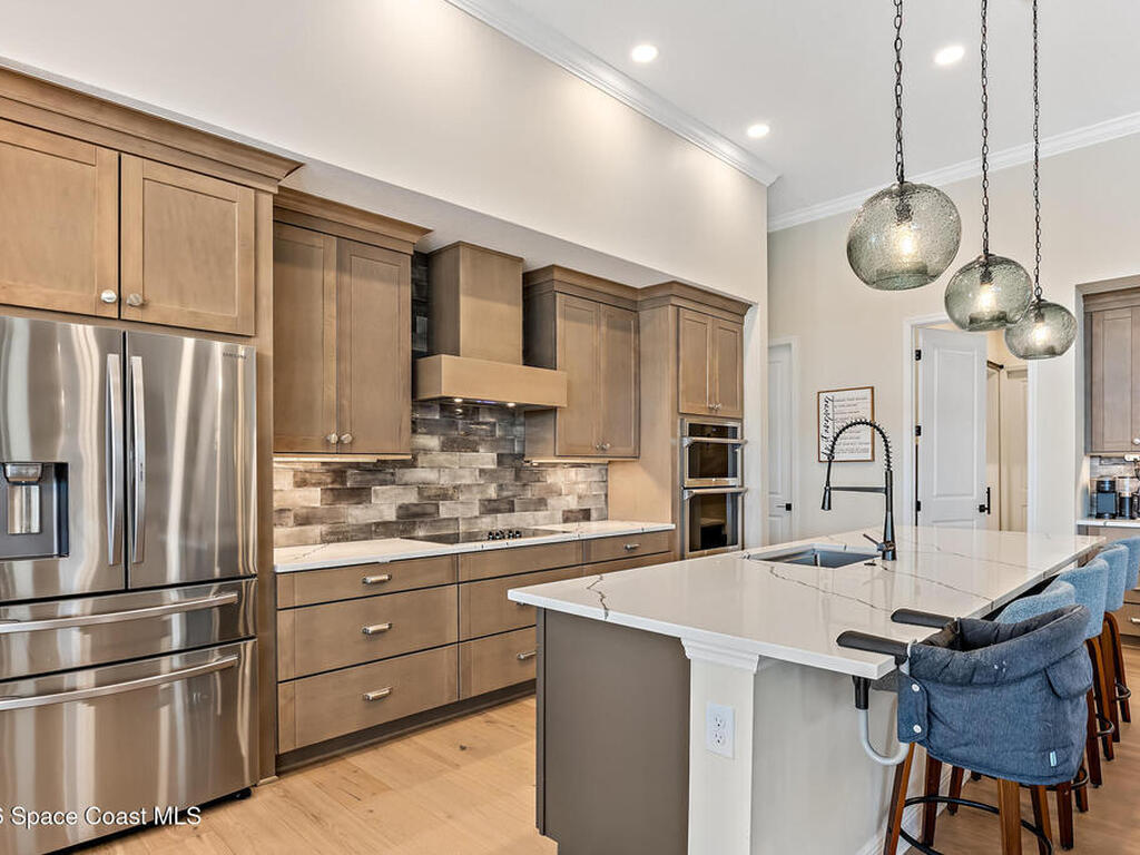 Step into modern luxury in this stunning 2023-built 4 bedroom, 3 bath home, thoughtfully designed for today's lifestyle. From the moment you arrive, you'll notice the attention to detail--the expansive living area showcases soaring 12 Foot ceilings, a custom fireplace wall with accent shelving, decorative feature walls, and built-in lighting, along with tray ceilings and wood beams in both the living room and primary suite. A beautifully appointed custom bar and sitting area adds another layer of luxury with a decorative tile wall, custom cabinetry, and Level 3 quartz--perfect for entertaining guests in style. Inside, the home delivers an impressive blend of style and functionality with 8' doors throughout, wood flooring in main areas, and custom tile in all wet spaces. The heart of the home is the chef's kitchen, featuring custom designed cabinetry, built-in stainless steel appliances,
