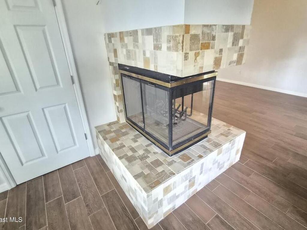 Beautifully updated Villa. 1 level with no one above you. This floorplan has the added family room at the rear for extra sq. ft. 2 br. 2 ba. 1 car Garage. The Granite kitchen has stainless steel appliances, and cabinets are newer, extra cabinets were added for pantry space with pull-outs. Eat in kitchen in the bay window. The wall was removed, opening it up to the living area, and a breakfast bar installed with nice stonework matching the backsplash. Large living room with 2 sided fireplace going into the rear family room. Inside was just freshly painted. Beautiful and durable wood look tile is throughout this Villa. Crown molding installed throughout. Both bathrooms were recently remodeled with new vanities and showers. A/c and roof are approximately 5 years old. Hurricane shutters. The $400 H.O.A fee includes so much including: cable t.v. & high speed internet, pool, lawn/landscaping, and insurance, exterior maintenance, trash pickup & roof replacements..