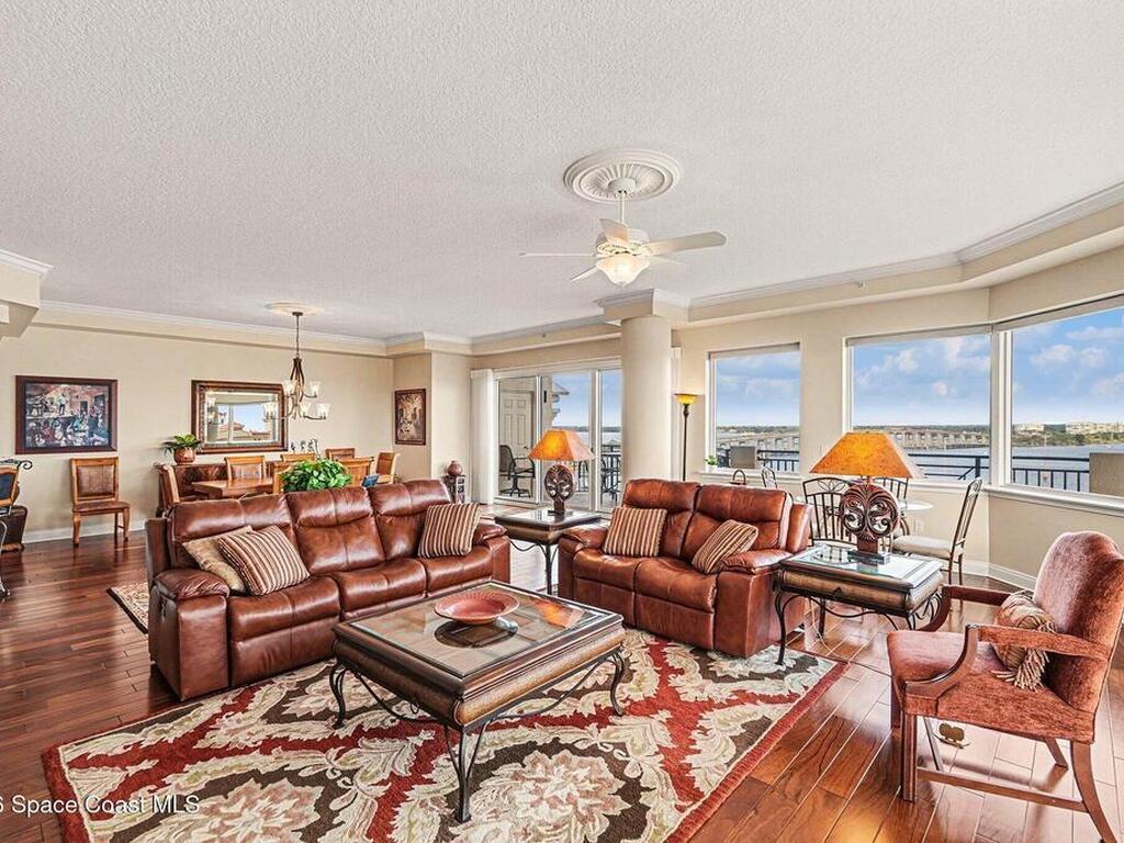 Welcome to 21 Riverside -- the crown jewel of Cocoa Village living.Perched on the 9th floor, this exclusive southeast corner residence commands breathtaking, unobstructed panoramic views of the Indian River and intracoastal waterway, framed by expansive wraparound balconies. From glowing sunrises to front-row rocket launches, the scenery here is nothing short of spectacular.Located just steps from Cocoa Village's fine dining, entertainment, and boutique shopping, this upgraded condominium delivers the rare combination of luxury, privacy, and walkable convenience. The pet-friendly building offers only two residences per floor, a community dock, 2 car garage and the ultimate in exclusivity with a private elevator opening directly into the residence.Inside, a light-filled great room is surrounded by water views, creating an effortless flow for both daily living and entertaining. The beautiful chef's kitchen blends style and function while your guest enjoy PRIME VIEW for rockets