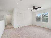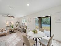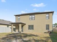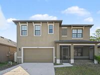 This spacious 5-bedroom, 3-bath, two-story contemporary home offers room to grow and flexible living spaces throughout. A versatile flex room on the first floor can serve as a home office, playroom, formal dining area, or secondary living space. The open floor plan features a dedicated dining area, large kitchen island, and stainless steel appliances, perfect for everyday living and entertaining. A first-floor guest suite provides convenience and privacy. Upstairs, the primary suite includes a walk-in shower and double sinks, along with three additional bedrooms that share a hall bath, a large bonus room, and a second-floor laundry room. Enjoy a fully fenced backyard with preserve views from the patio. Seller-owned solar panels add efficiency. Major updates include roof (2023), HVAC (2023), water heater (2023), and solar panels (2024). Community amenities include a pool, playground, sidewalks, and walking trails. Plenty of space to stretch out and make this home your own.