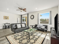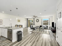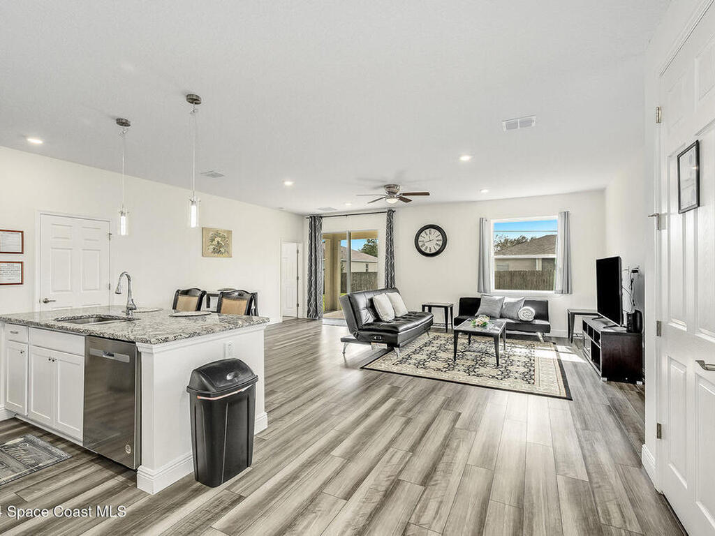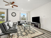 NO HOA! Discover the perfect blend of comfort and functionality in this meticulously maintained home, designed with an inviting open floor plan. Step into the large Owner's Suite, complete with a massive walk-in closet and spacious bathroom. A versatile flex room / home office and dedicated dining area add to the spacious feel. The kitchen shines with abundant cabinet storage, pantry, stainless steel appliances, and a prep-friendly space. Durable vinyl flooring in living areas and cozy carpet in bedrooms make every step feel just right. Built with concrete block construction, this home offers city water, storm panels, gutters and a solar attic fan for added efficiency. Enjoy the covered front and rear porches, plus a spacious backyard, perfect for outdoor gatherings. This home combines practicality and charm--ready to welcome its next owners!