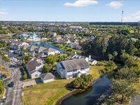 Bright & cheerful 3BR/2BA condo with lake views! Cathedral, textured ceilings! Private, tiled, screened porch. Courtyard views from master suite. Eat-in kitchen plus dining room. Walk-in closets. Impact windows! AC 2019. Re-pipe 2024. Roof 2018. Neutral Berber carpeting or tiled throughout. Furniture included, many IKEA! Community amenities include: heated pool, fitness center, tennis/pickleball courts, racquetball, more! Convenient to golf, restaurants & shopping; less than 8 miles to the beach!