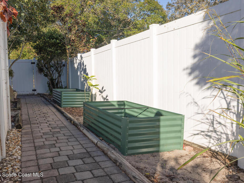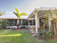 WOW--Space, privacy, and flexibility come together in this one-of-a-kind property!Mature landscaping surrounds the home, kept lush by a well-fed in-ground sprinkler system. Garden enthusiasts will appreciate two built-in 3x7 raised beds currently producing pineapples with room to expand. The backyard features deep open views. A large screened patio overlooks the yard, creating a peaceful space for morning coffee or evening gatherings. Just a short walk away, Turkey Creek Natural Area offers miles of scenic trails and kayaking for easy outdoor living. A standout feature is the 15x26 detached, climate-controlled workshop with dedicated power, ideal for crafts, hobbies, or projects. Attractive Bahama shutters enhance curb appeal, while the durable metal roof adds long-term value. Homes offering this much lifestyle and versatility rarely last. Schedule your private showing today.