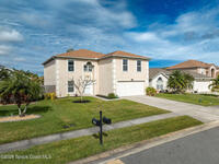 Welcome home to this stunning two-story residence on a prime water-view lot in the gated Brookshire at Heritage Oaks community. Enjoy excellent curb appeal and a fully fenced backyard perfect for pets and play. This floor plan offers ample space for working from home, relaxing, entertaining, and storage. The kitchen offers dual pantries, a center island with prep sink, and seamless flow to the living area plus a spacious screened patio--entertaining has never been easier! Downstairs flex room adapts to your needs: home office, gym, or guest suite. Upstairs, a bright loft leads to the large primary suite with safe-room door, king-size space, dual walk-in closets, soaker tub, and separate shower. Three additional bedrooms share a dual-sink bath. Recent roof and storm panels add peace of mind. Ideally located near top employers, schools, shopping, dining and more --this home blends comfort, convenience, and coastal lifestyle. Come see what this home offers for you and your family today!