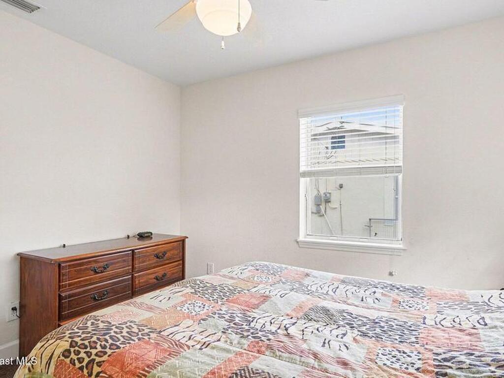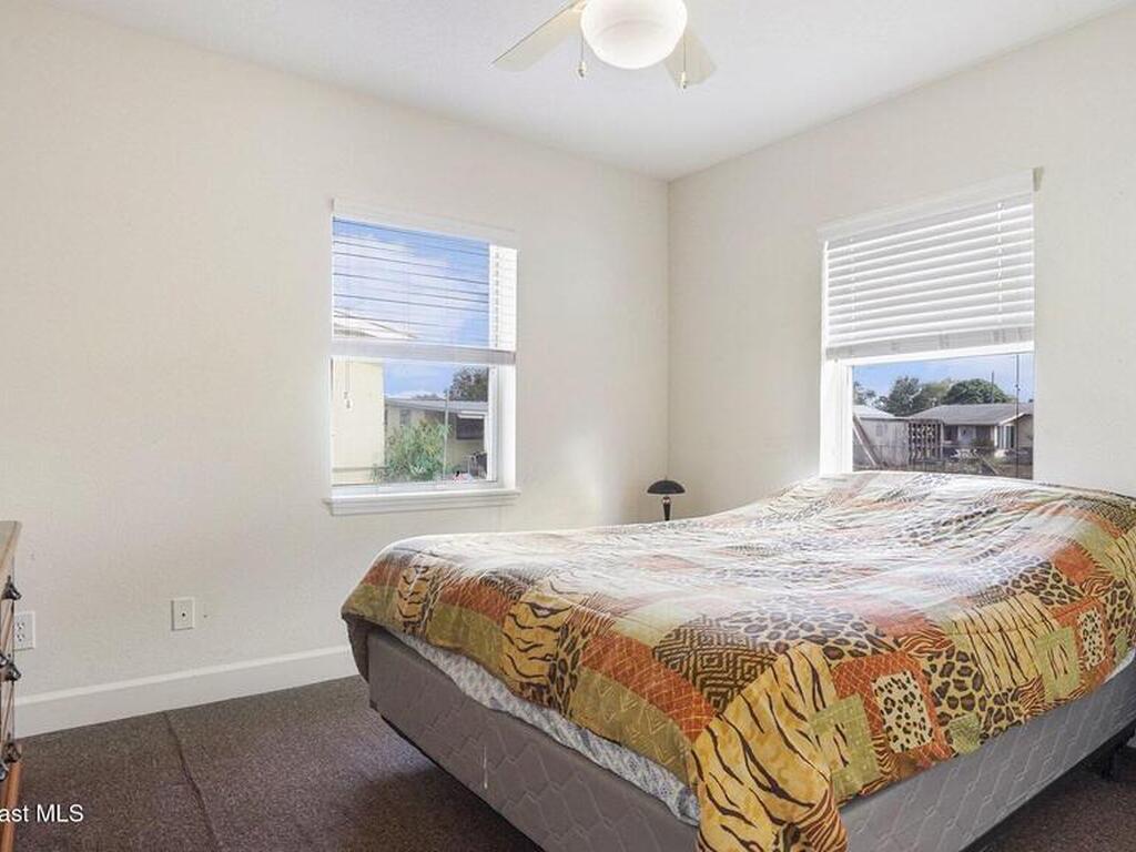 In the heart of W. Melbourne, this charming home offers convenience and tranquility. Minutes from I-95, commuting throughout Brevard or traveling to OIA is a breeze, shopping, dining, medical facilities, & everyday necessities are all close by. Tucked away on a quiet dead-end street with a wooded area across the road, provides peaceful living with no through traffic. The former carport has been enclosed, adding valuable square footage and versatile living space with its own entry and exit access. Inside, you'll also find an indoor laundry room with additional exterior access for added functionality. The large backyard is mostly fenced, offering plenty of room to relax, entertain, or garden. Major renovations completed in 2009 included all plumbing, electrical, insulation, double-pane windows, window treatments, HVAC and ductwork, kitchen cabinetry, appliances, bathroom updates, and tile throughout the main area. The roof was replaced in 2020, and ceiling fans in every room.