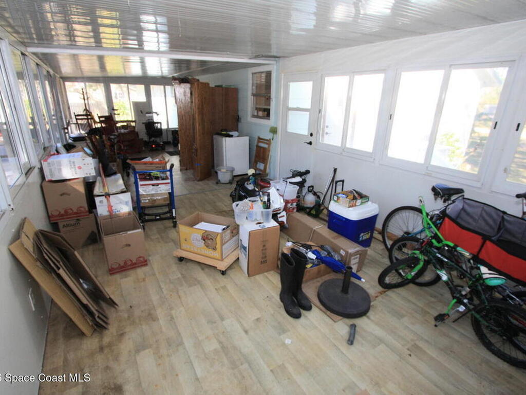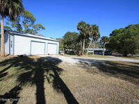 Beautiful corner lot with over an acre for all of your toys. The metal workshop building offers plenty of space for your projects, the air compressor stays, and you are close to shopping (Publix & the New Aldi), the 510 causeway to the beaches (15 minutes), the Indian River (Boat Launches), Sebastian, and Fellsmere. Easy on to Hwy 95, the airports, but far away enough not to hear the noise. There are also several sheds on the property, that stay, and there is plenty of space for parking. New drain field in April of 2025. The home also offers a large covered lanai, and several porches.