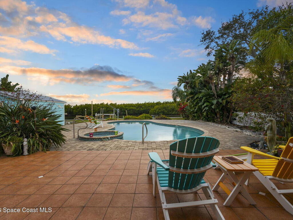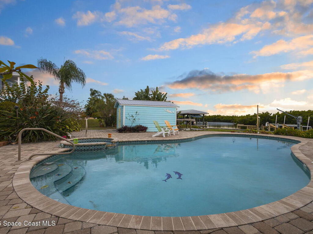 Live the Florida dream in this stunning 4-bedroom, 3-bath waterfront residence nestled in Inlet Shores, one of New Smyrna Beach's most peaceful and private neighborhoods. Designed for both relaxation and entertaining, the backyard is a private oasis featuring a 20, 000-gallon saltwater pool, covered patio, and private dock with boat lift. Evenings are truly unforgettable, with breathtaking sunset views from the dock that are nothing short of spectacular. Inside, the home offers a bright, open floor plan with a spacious family room and a welcoming kitchen ideal for gatherings. Large sliding glass doors flood the interior with natural light and seamlessly connect indoor living to the waterfront outdoors. A hurricane-safe bonus room adds peace of mind and versatility, which is perfect as a secure retreat, office, or flex space. This exceptional waterfront property combines location, lifestyle, and rare features into one remarkable offering.