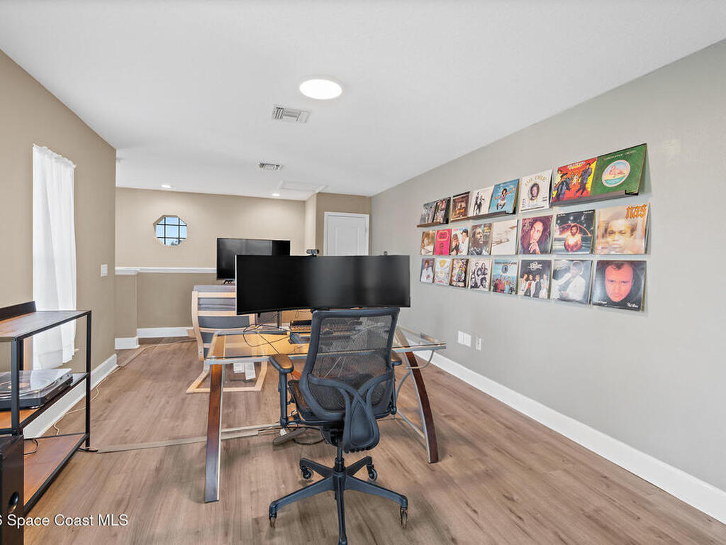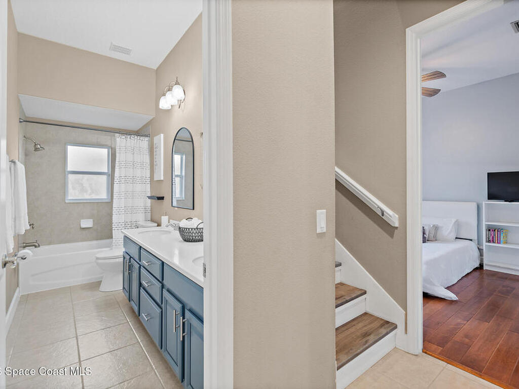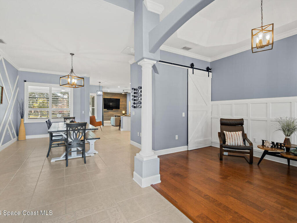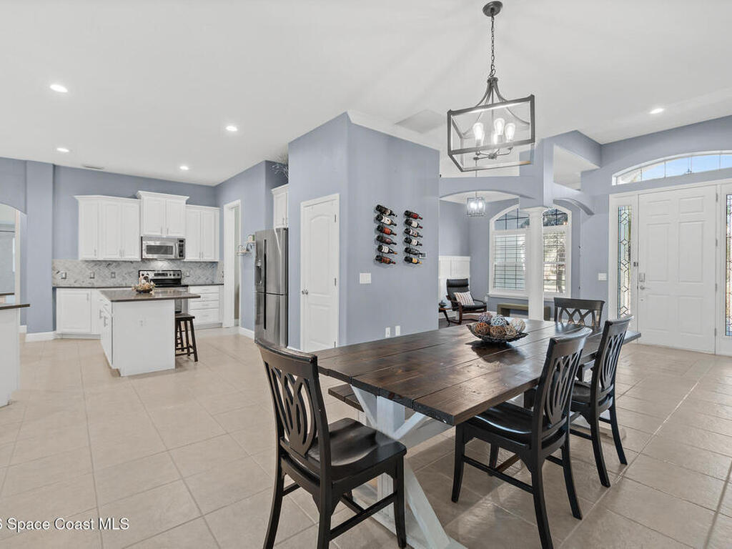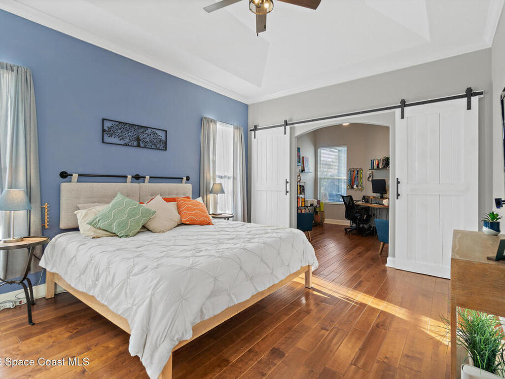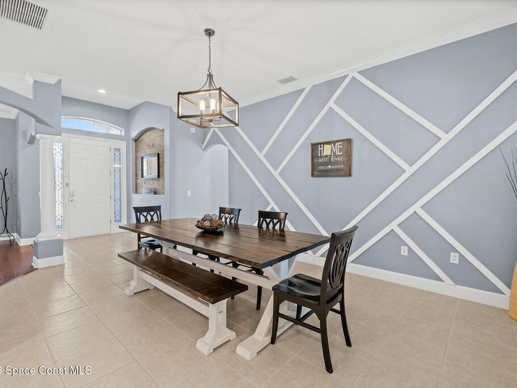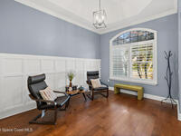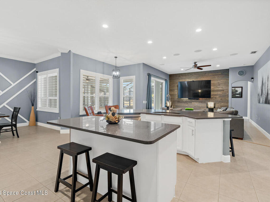 Transferable VA loan--ask for details on the approx. 2.75% INTEREST RATE! Welcome to this beautifully updated, lakefront pool home located in the gated Sunstone community of Viera. This 4-bedroom, 3-bath home with an upstairs BONUS ROOM blends timeless design with modern updates throughout. Recent improvements include fresh interior and exterior paint, an updated kitchen, and a recently resurfaced saltwater, solar-heated pool, creating a truly move-in-ready home. The open floor plan is filled with natural light and features tray ceilings, crown molding, 8-foot doors, and generous living spaces ideal for everyday living and entertaining. The oversized primary suite offers a sitting area perfect for a home office or flex space, dual walk-in closets, and a spa-style bath. Step outside to a screened lanai with a saltwater, solar-heated pool, summer kitchen, and tranquil lake views. Notable updates include roof (2018), upstairs A/C (2020), and downstairs A/C (2025).