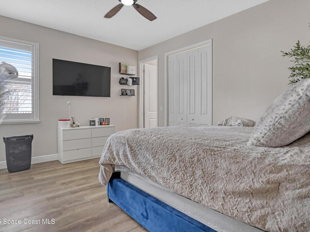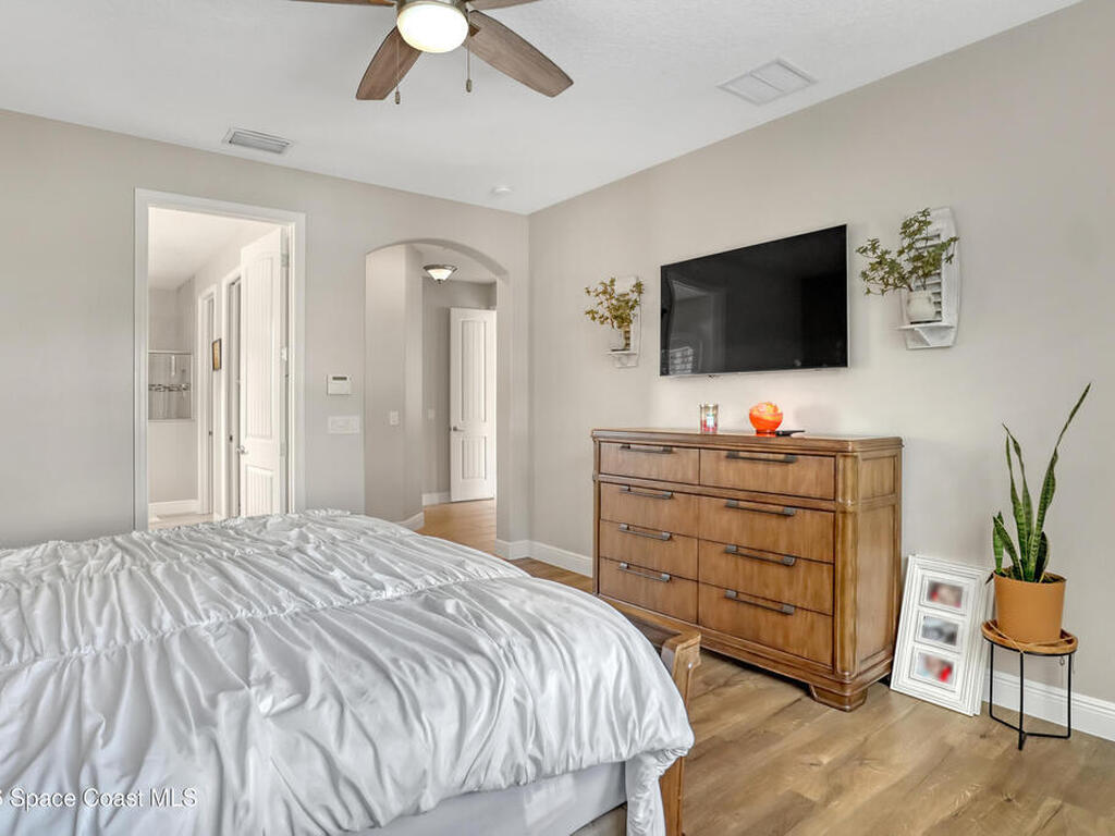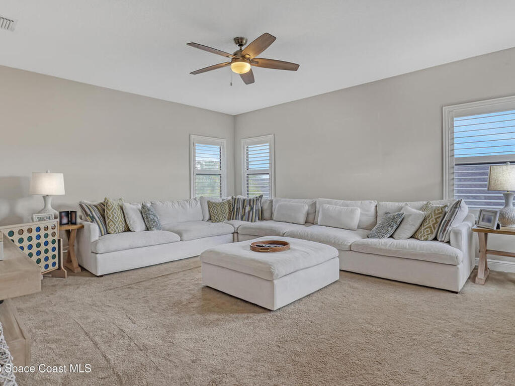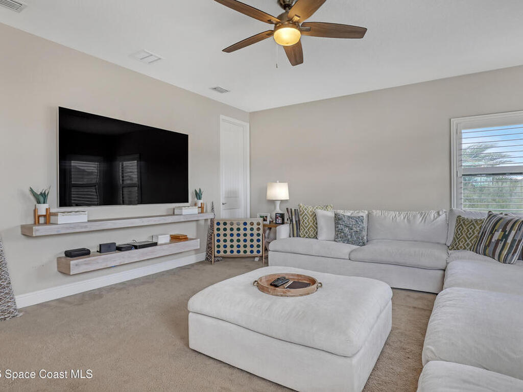 Experience upscale Viera living in this exceptional 4-bedroom, 3.5-bath home with a rare in-law suite. The open floor plan is designed for modern luxury and effortless entertaining. The gourmet kitchen features granite countertops, abundant cabinetry, and a spacious layout that flows seamlessly into the living areas. The main level includes the elegant primary suite plus a private in-law suite for guests or extended family. Upstairs, three bedrooms and a massive media room offer flexible space and comfort, with easy conversion to a fifth bedroom. Step outside to the deck and enjoy serene water views. Ideally located near Kennedy Space Center, Viera Hospital, shopping, dining, and entertainment, this home offers a premier address and refined lifestyle for your family. Homeowner can obtain a private membership to Addison Village Club with access to pool, courts, gym etc.