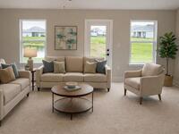 Relaxed Florida living with modern design. A covered front porch and open foyer welcome you into a spacious living and dining area with vaulted ceilings and abundant natural light. The open-concept kitchen features an island overlooking the living spaces, ideal for gatherings and entertaining. Finishes include crown-molded cabinets, tile floors in wet areas, stainless appliances, designer lighting, 5' baseboards, and lever-handle doorknobs. The split plan offers a private primary suite with walk-in closet, soaking tub, separate shower, dual vanity, and tile floor. A large trussed back porch extends your living outdoors for year-round grilling and relaxing. St. John's Preserve is a gated Palm Bay community with 2 entrances, pool, playground and lit sidewalks.