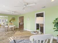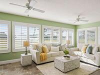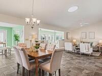 Located in a resort-style country club community offering top-notch amenities for an exceptional Florida lifestyle, this lovely remodeled, light-filled extended Raleigh model features stunning golf course and water views. Vaulted ceilings and an open floor plan create an inviting atmosphere, with formal living and dining areas plus an expansive Florida room and bonus space--perfect for relaxing or entertaining. Porcelain tile runs throughout the home, complemented by luxury blinds.The kitchen overlooks the living and dining areas and captures the beautiful views, offering a cozy breakfast nook and abundant cabinetry. Indoor laundry adds everyday convenience. The spacious primary suite features his-and-her walk-in closets, a double vanity, and a beautifully tiled walk-in shower.A charming front courtyard provides private outdoor