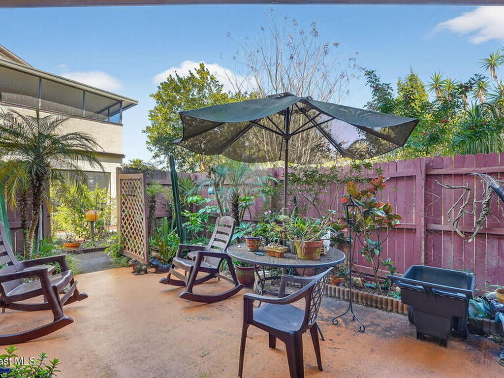 There's No Place Like Home! Step through a charming private courtyard entrance and into a home that's truly move-in ready--being sold fully furnished, including washer and dryer. Located in Oak Tree Gardens, this 2-bedroom, 2.5-bath townhouse offers 1, 247 sq ft of relaxed, low-maintenance living. The main level is ideal for everyday life and entertaining, featuring an open flow, convenient half bath. Upstairs, both bedrooms provide privacy, each with its own full bathroom, and in-unit laundry. Both bedrooms open to a private balcony, perfect for morning coffee or winding down in the evening. Major upgrades add peace of mind, including a recent roof (2023), updated electrical panel, new water heater, and full replumb. Centrally located near shopping, dining, and commuter routes, this furnished Oak Tree Gardens home is ideal for a primary residence, second home, or investment--just bring your suitcase and settle in. Minutes from Space Center, beaches, downtown, I-95 & cruise port.