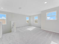 With almost 3, 000 square feet, The Chester 2-story single-family home is a spacious and welcoming design for your growing family. The entry from both the front and 2-car garage flow directly into the open kitchen where family can gather to prepare meals and relax all together. Windows along the exterior wall lead to the outdoor patio and provide spectacular morning and evening light throughout the main living area. Tucked away in the front of the house are spaces for work and relaxation, both upstairs and down. An office on the first floor and a loft area above provides the extra room everyone in the family needs. The second floor has a separate hallway with three bedrooms and a shared guest bathroom with a double vanity to help make mornings more efficient and the walk-in laundry room is located right around the corner for convenience. A large primary suite provides everything needed for privacy and comfort, including a double vanity and two walk-in closets.