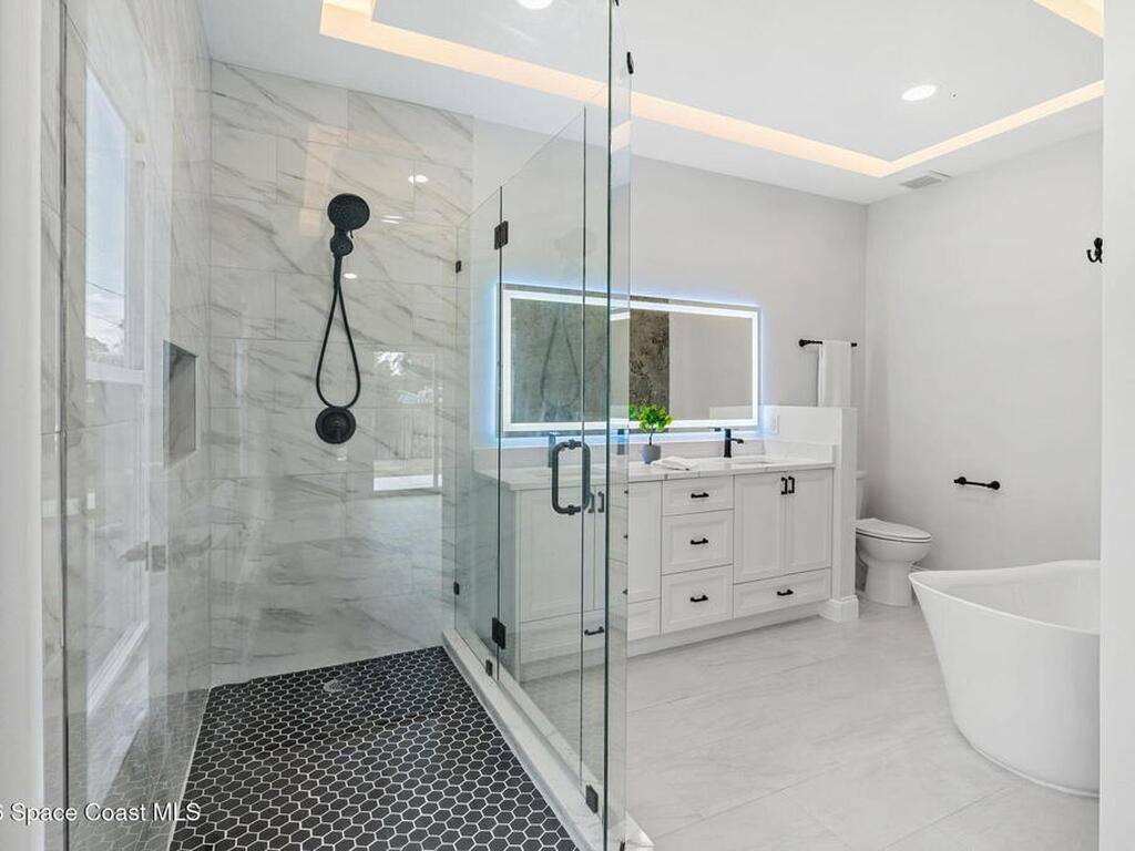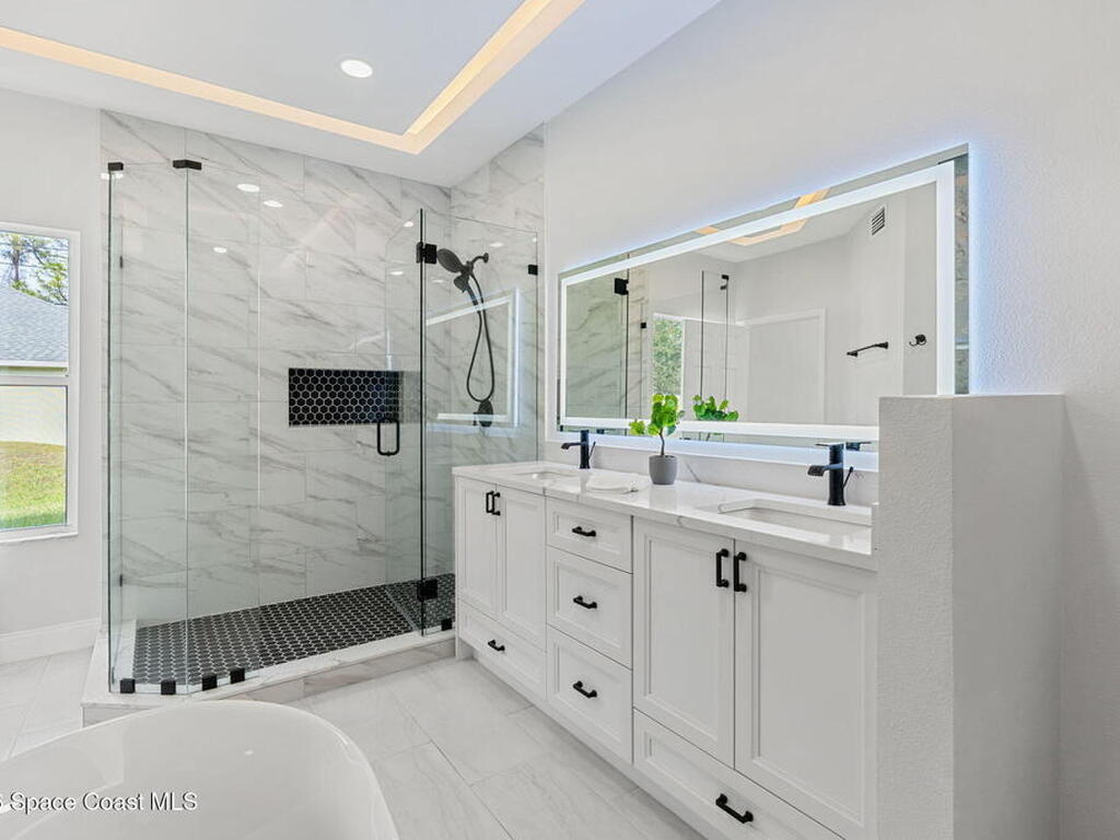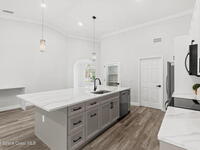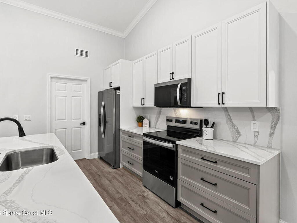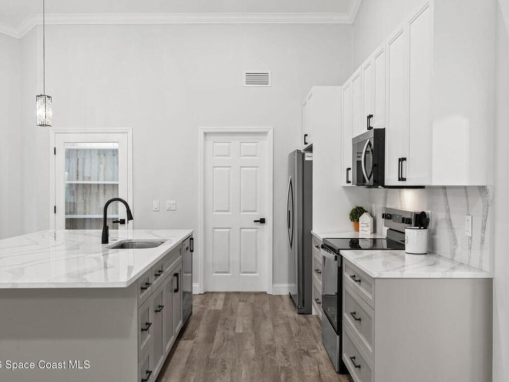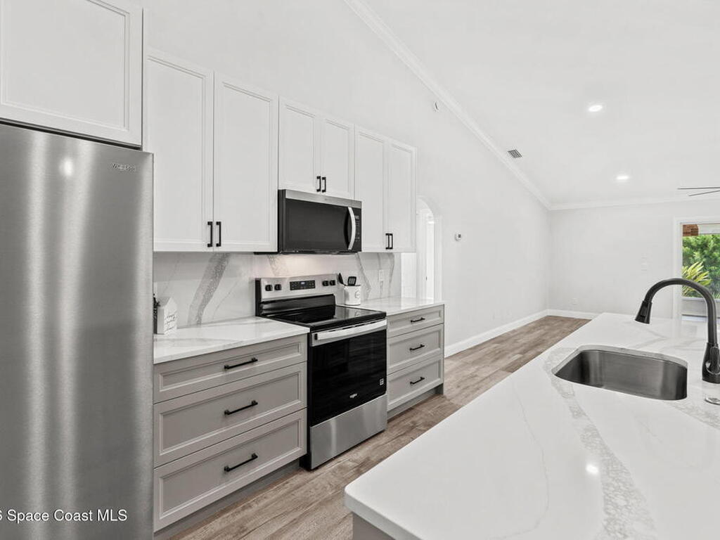 Welcome to this FULLY RENOVATED Lake Washington home, tucked away on a private street with fewer than ten neighboring properties--offering rare privacy and tranquility. NEW ROOF 2025. Inside, soaring volume ceilings and luxury LVP flooring throughout create a bright, modern feel. Formal Dining Room & Flex Space/Den. The stunning chef's kitchen is the heart of the home with stainless appliances, quartz counter tops & featuring an oversized island with seating for up to six--perfect for entertaining. Retreat to the spacious primary suite, complete with a spa-inspired soaking tub and a large walk-in shower. A generous side-loading garage provides ample storage, and the home offers plenty of space for comfortable everyday living. City Water and Sewer. Ideally located close to everything--shopping, schools, major roadways, Patrick Space Force Base, and THE BEACH!.Don't miss this exceptional opportunity--Schedule your showing today!