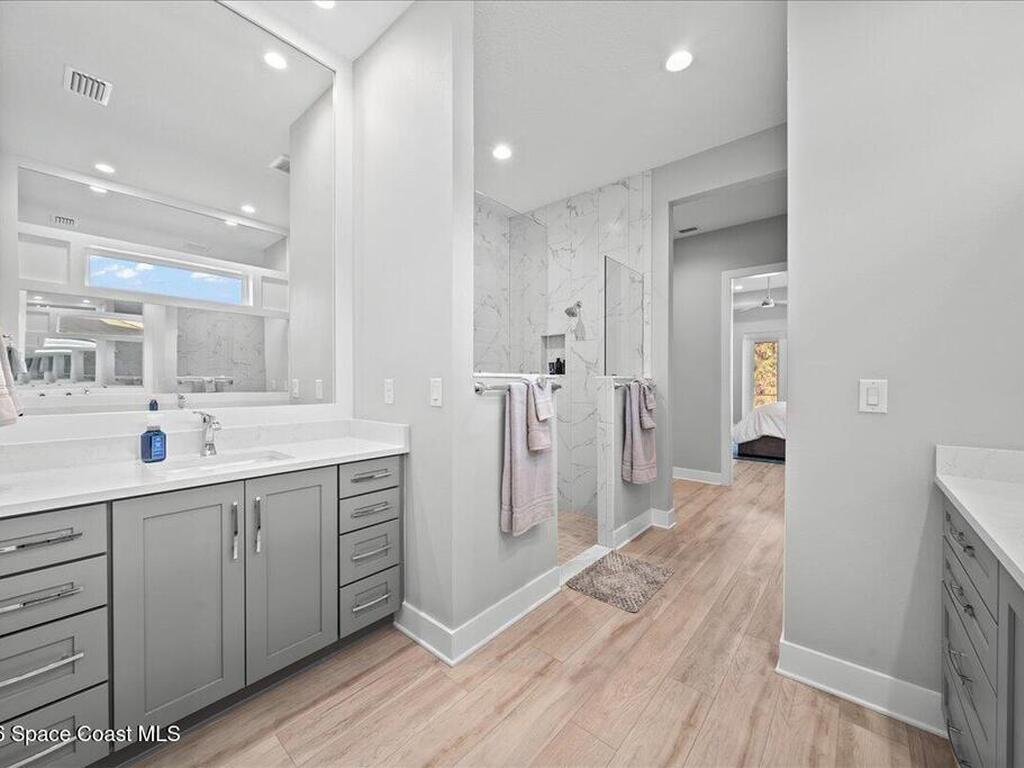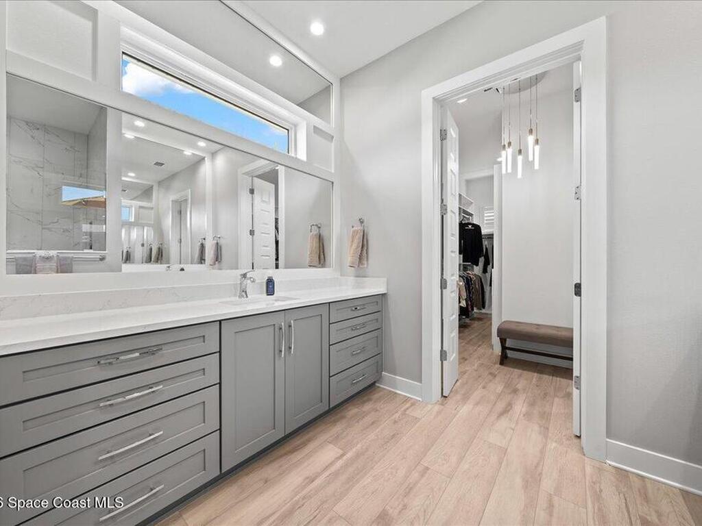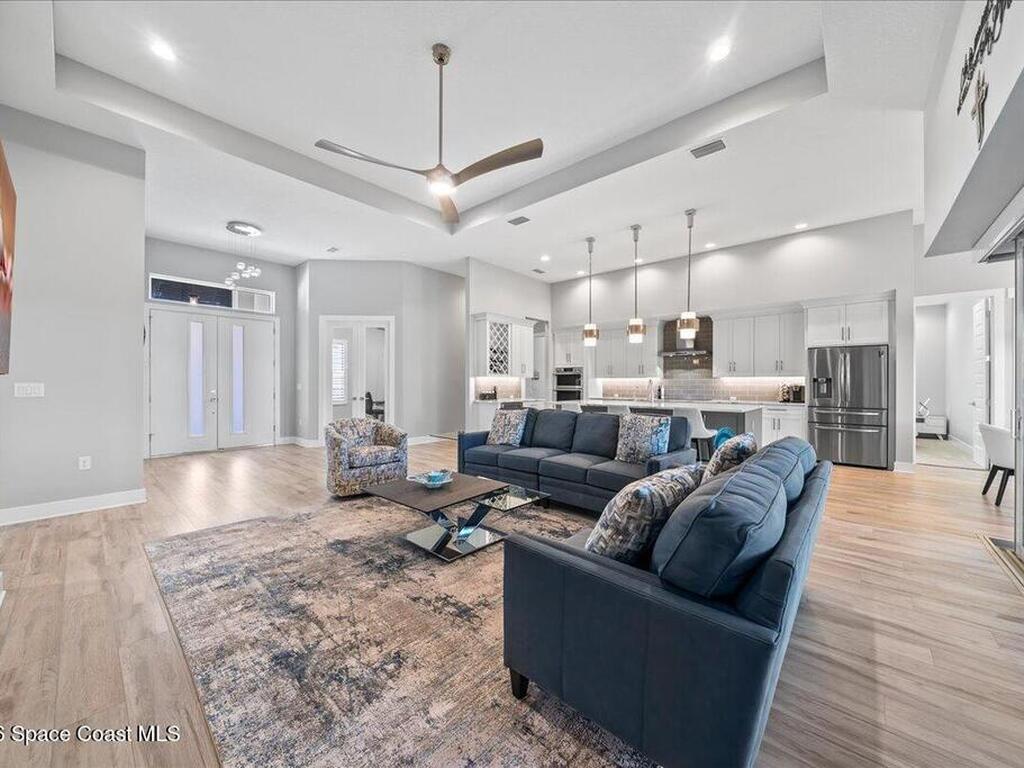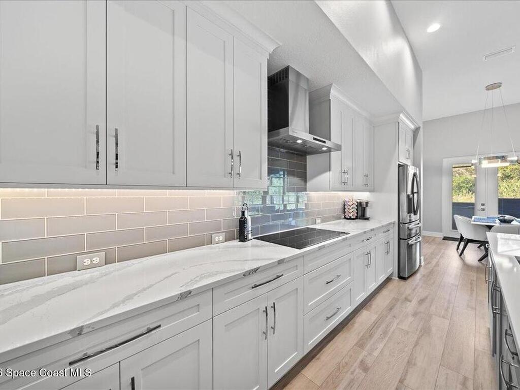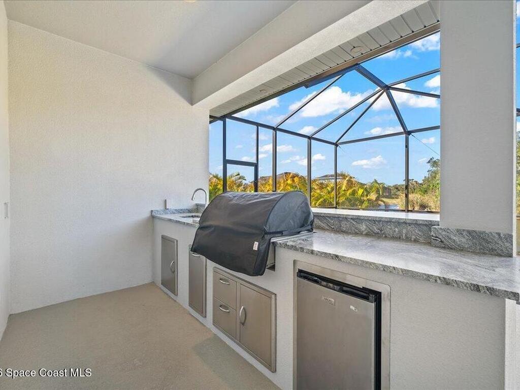 Custom-built residence in the highly sought-after gated community of the Enclave at Lake Washington. This exquisite home offers unrivaled luxury and privacy, backed by a serene lake and preserve. Inside, you are greeted by a light-filled great room featuring a stylish fireplace, soaring tray ceilings, and expansive collapsible sliders. These lead to an outdoor oasis complete with a heated pool, spa, and summer kitchen. The gourmet kitchen boasts an elegant Cambria Quartz island and abundant cabinetry, opening seamlessly to the living and dining areas.The home includes four bedrooms, four bathrooms, an office, and a large media room. The spacious primary suite offers a custom walk-in closet and a spa-like bathroom with dual vanities. Additional upgrades include Hurricane-rated windows and doors, Custom Lighting, Luxury vinyl flooring, Whole-house water filtration system, water softener, reverse osmosis and sound system.