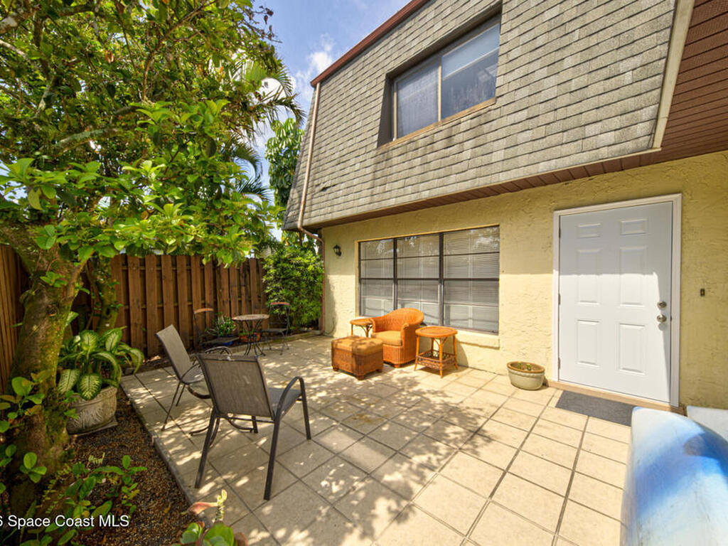 Well Maintained, Spaciously Designed 2 Bedroom, 1 Full & 1/2 Bathroom, 2 Story Townhome located in Titusville. This home features a New A/C Unit (2025) as well as a Flat Roofing Sealant System by EverSeal that is under warranty and fully transferable to all future owners of the Property. Many other upgrades (2025) include: New Carpet on Second Floor and Stairs, New Walk in Shower & toilets in Bathrooms, Tankless Hot Water Heater, New Washer & Dryer Hookups, New Ceiling Fans & Lighting Fixtures, Professional Paint throughout, and New Entryway Doors. A Large Fenced In (6ft privacy fence) Courtyard with mature tropical landscaping is great for outdoor entertainment or just your own little Oasis. Along with low HOA fees and ample parking, this place is worth looking at.