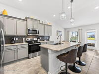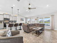 Experience modern lakefront living in the desirable gated community of The Courtyards at Waterstone. This beautifully designed 4-bedroom, 2-bath home offers a popular split-bedroom floor plan and an inviting open-concept layout ideal for both everyday living and entertaining. The home also features a stylish kitchen with stainless steel appliances, an eat-in area, and a center island overlooking the great room, plus a separate formal dining room for special gatherings. Light-filled living spaces flow seamlessly to the screened lanai with tranquil lake views, perfect for morning coffee or evening relaxation. The private primary suite also overlooks the lake and includes his-and-hers walk-in closets and a spa-like ensuite with garden tub, separate walk-in shower, and double-sink vanity. There is also a separate laundry room with Maytag washer and dryer, and a two-car garage with epoxy flooring. Also enjoy the convenience and security of a resort-style community pool.