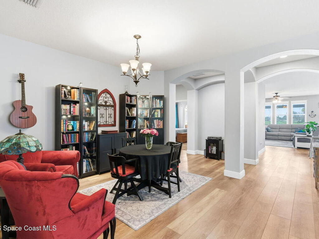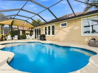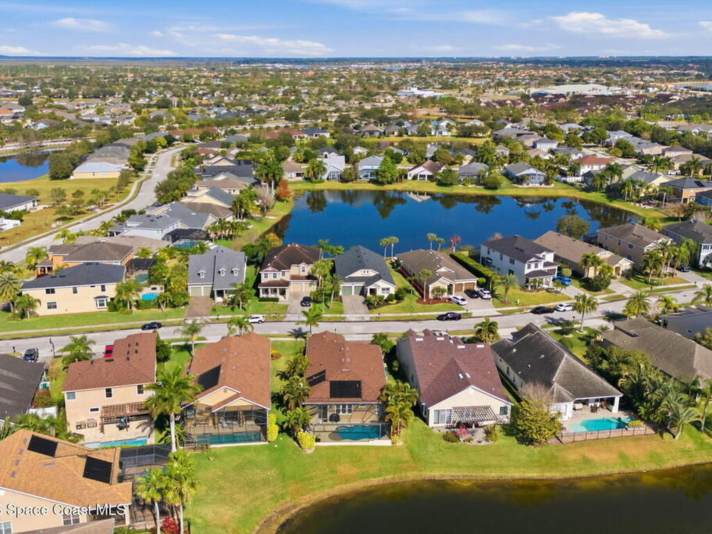 Situated on a premium lakefront lot in the gated Daintree community of West Viera this gorgeous 4-bedroom, 3-bath home offers a lifestyle that feels equal parts refined and relaxed, anchored by a resort-style outdoor retreat featuring a screened, beach-entry saltwater pool with solar heat, a striking 30-foot panoramic enclosure, and tranquil water views beyond. Significant upgrades reflect the home's exceptional care and value, including the pool, solar, and screen addition completed in 2019, roof replacement in 2021, wood-look tile flooring and a high-efficiency Trane variable-speed A/C system added in 2022, and a whole-house water softener and filtration system with reverse osmosis in the kitchen installed in 2023. The result is a turnkey lakefront opportunity in one of Viera's most sought-after enclaves, prized for its thoughtfully designed homes, serene setting, and upscale atmosphere--offering polished, effortless Florida living.