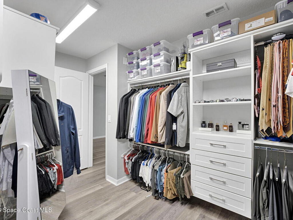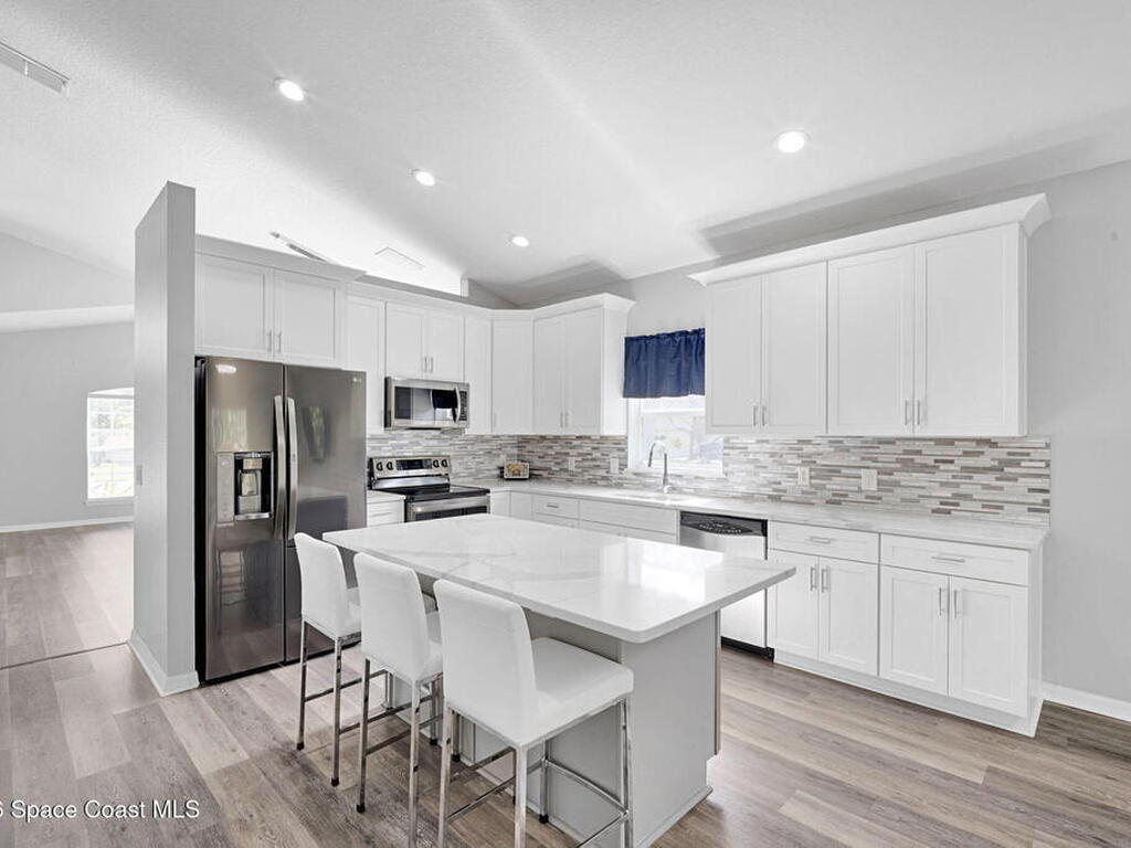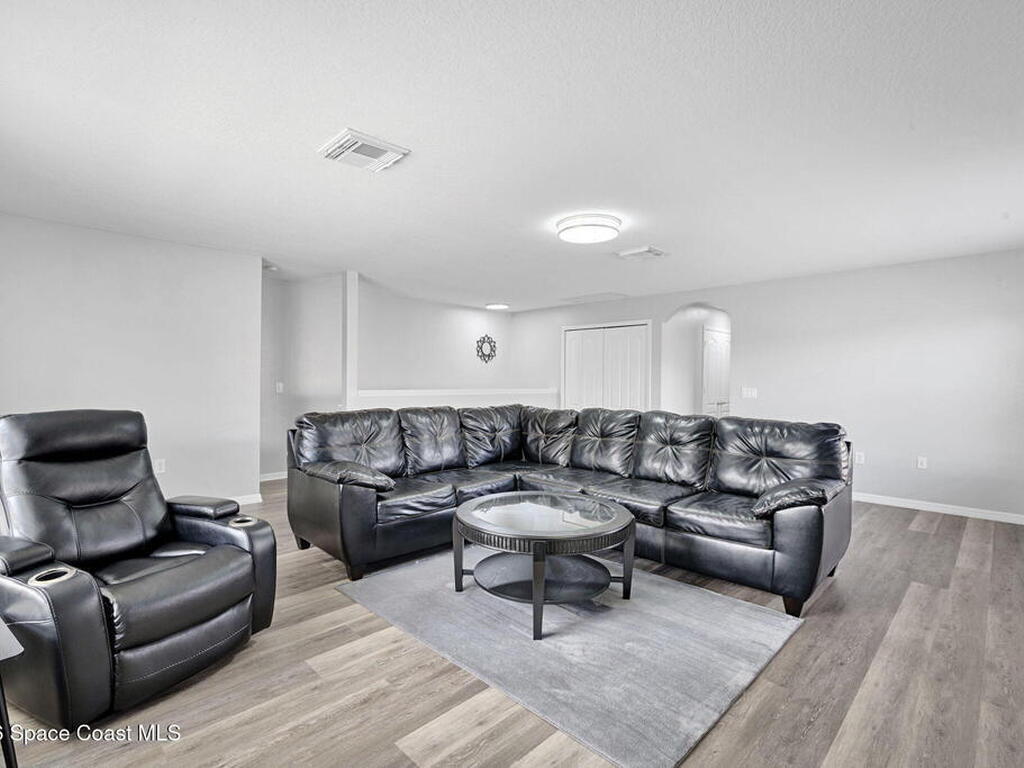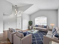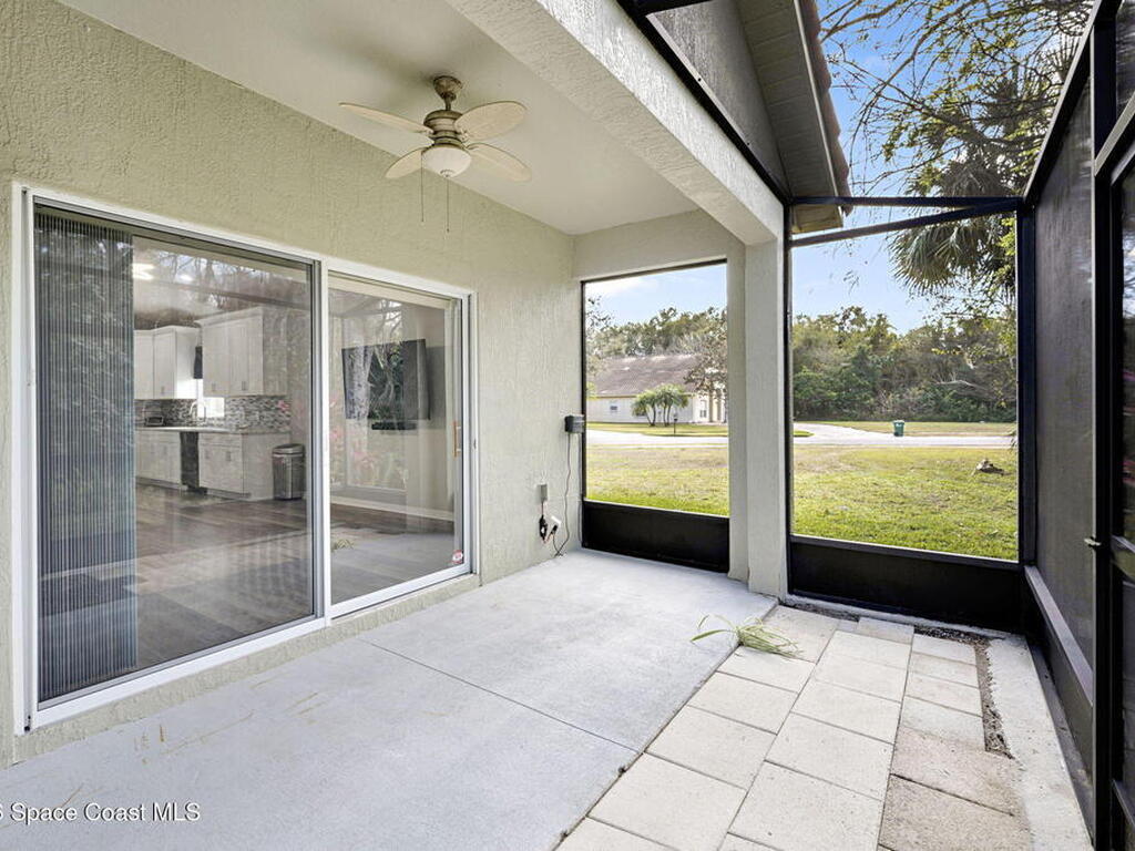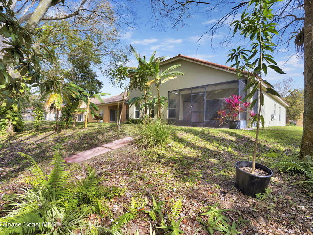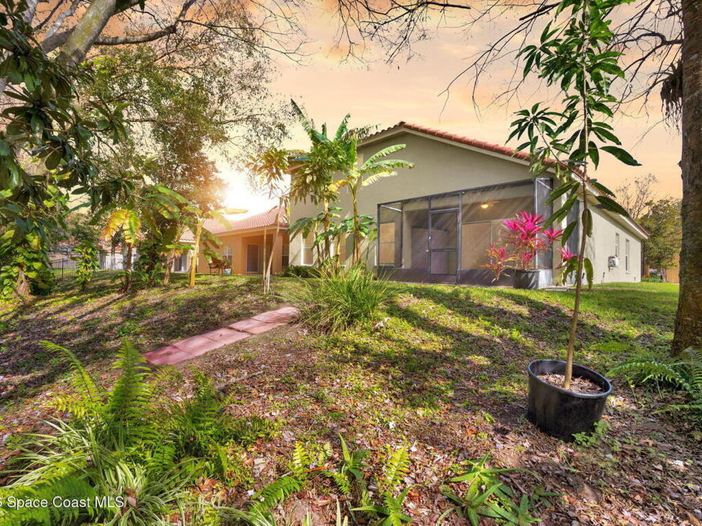 Positioned in a golf course community near Kennedy Space Center and aerospace companies, this home offers a serene setting, space, and upgrades. With 4 bedrooms, 2.5 baths, a bonus room, and nearly 2, 900 sq ft, the layout is built for flexibility, whether you work from home, host often, or need room to spread out.High ceilings and natural light elevate the main living areas, while the kitchen delivers generous counter space and storage designed for everyday efficiency. A split bedroom plan adds privacy, and the screened porch overlooks a wooded preserve lot, providing a quiet backdrop within an established golf course community. Additional features include a tile roof, newer A/C (2021), and water heater (2024).