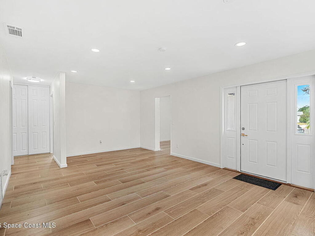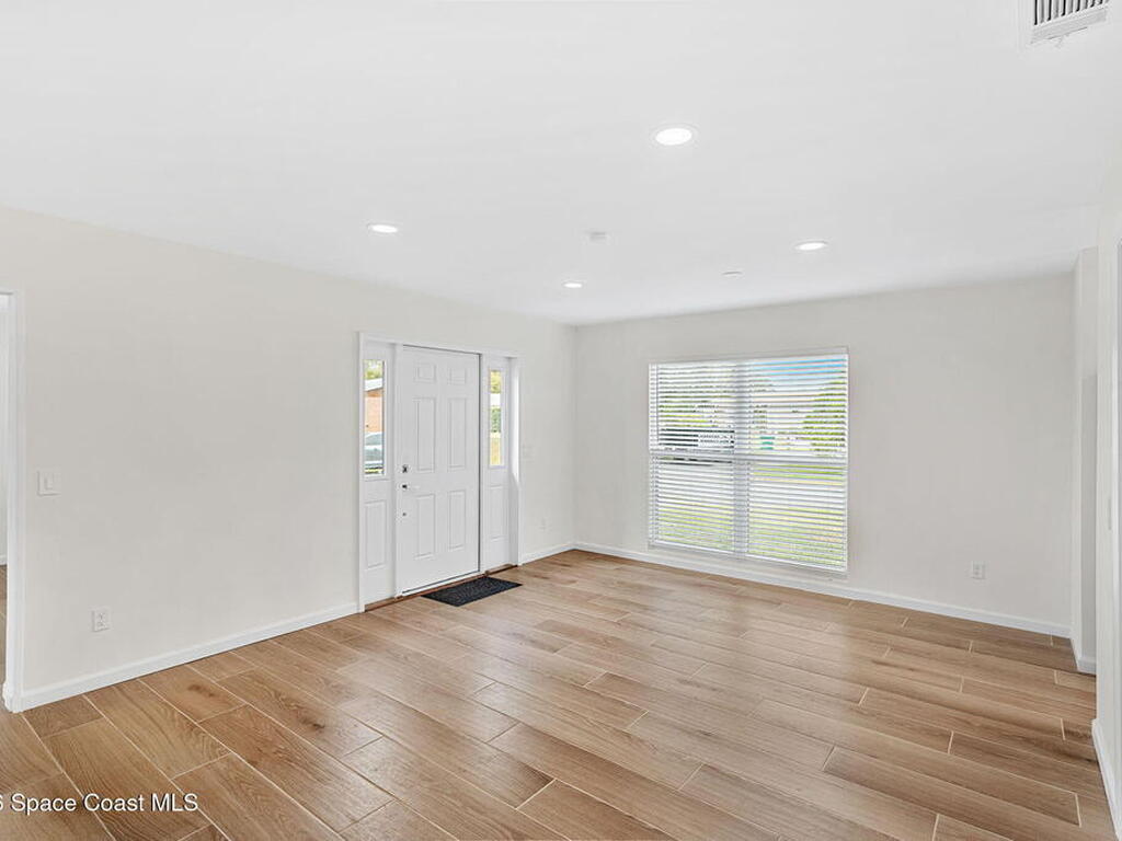 Over $80, 000 in upgrades and permitting on this elevated corner lot with brand new roof and hurricane impact windows. This home features 2025 modern updates and offers true peace of mind with a new architectural shingle roof, hurricane impact windows and doors and a 2024 HVAC system.Inside, enjoy abundant natural light, new wood plank tile flooring and baseboards throughout and an updated kitchen with granite stone countertops, wood shaker cabinetry and brand-new stainless-steel appliances. The primary suite features a spacious closet and a beautifully renovated ensuite with a modern walk-in shower. Guest bedrooms are generously sized, complemented by an updated guest bath with soaking tub, niche detail and new lighting. A bonus room offers flexible space for a home office or den. Set on an elevated corner lot within a cul-de-sac, not a through street, offering added privacy. Just minutes from the beach with easy access to I-95, shopping, dining, hospitals and more!