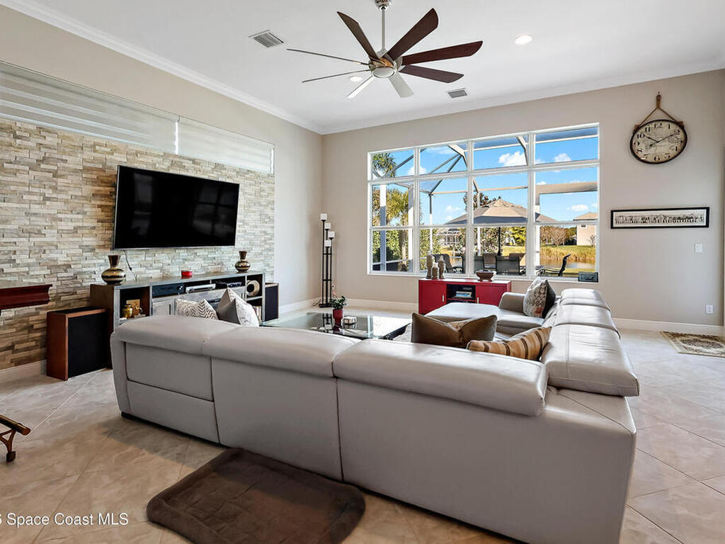 Luxury 2019 Lake home in Sebastian. 4/3/2 GHO Home. Exquisite Primary MBR overlooking the lake w/an en-suite BTH that has been thoughtfully integrated elevating the suite into a true sanctuary. Impact windows, Upgraded cabinetry in this beautiful kitchen overlooking a Great Room with lots of windows offering a generous living space filled with natural light and seamless indoor-outdoor flow. Luxury countertops, upgraded diamond pattern tile layout throughout main areas. No carpets. Impact windows, Flat Tile roof, House Generator w/500 Gal. Gas Tank. Premium pool finishes like 'Wet Edge Technology' made w/natural stone for a durable, long-lasting surface and Magic Bowl Water Effects to create a magical back yard for all to enjoy!