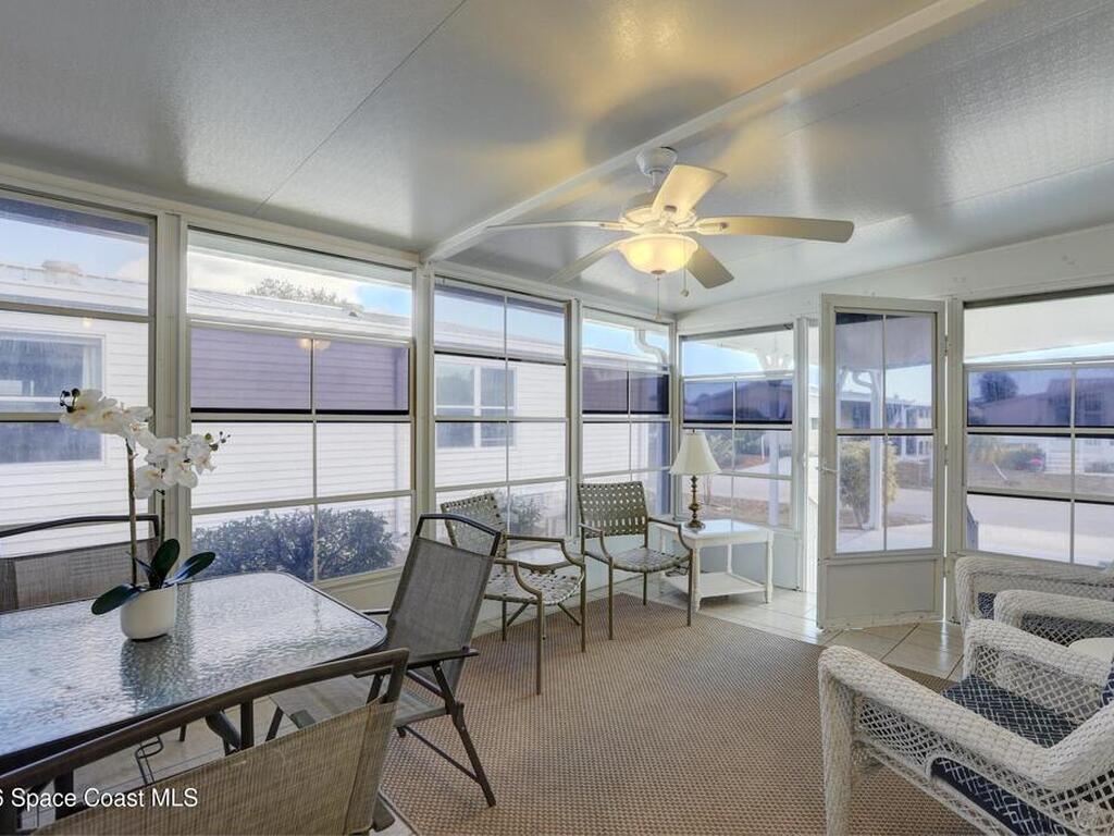 Fully furnished residence featuring a bright, open floor plan with living and dining areas enhanced by a full bay window with distinctive trapezoid transom panes, filling the home with natural light. Spacious chef's kitchen offers ample workspace and storage, ideal for both everyday living and entertaining. Enjoy a raised, enclosed glass porch for year-round relaxation, convenient interior laundry, and a private backyard retreat. Community amenities include a heated pool, clubhouse, billiards room, tennis courts, and shuffleboard--offering an active and social lifestyle.