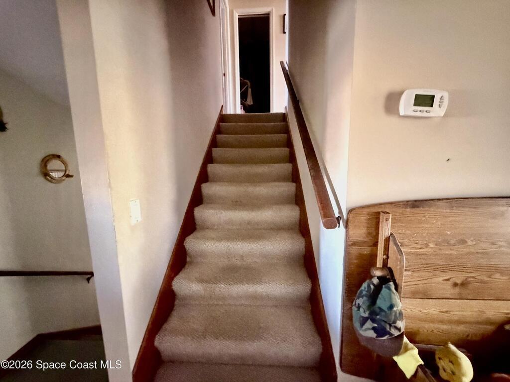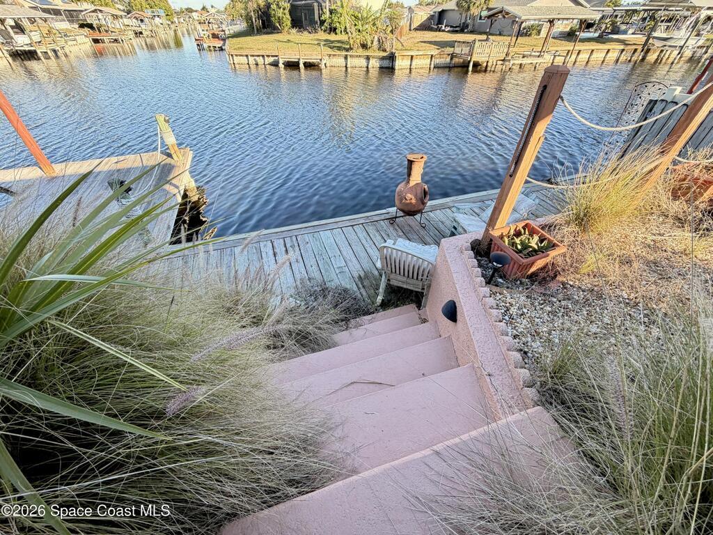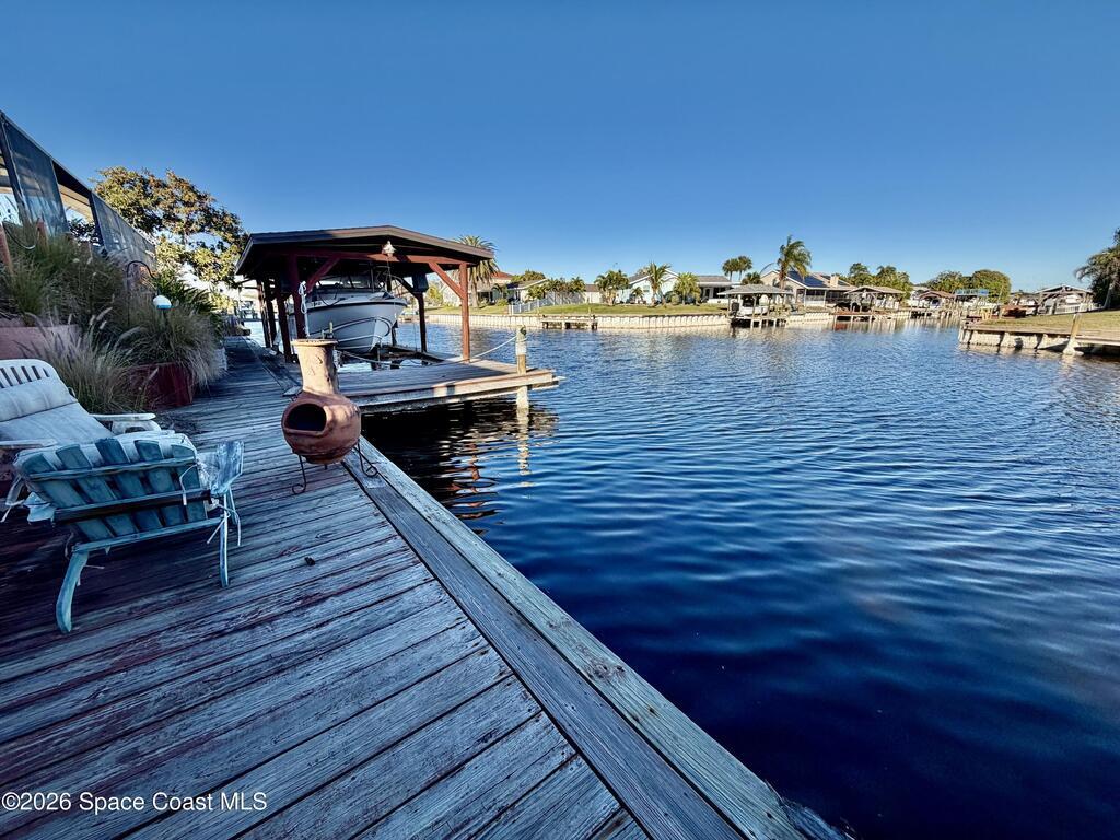 Investor Special! Rare opportunity to own a 3-level waterfront home with 95 feet of navigable canal frontage in desirable Merritt Island. This 3 bedroom, 2.5 bath property features a screened pool, enclosed porch, large dock, with boat slip and sits on a quiet cul-de-sac. The age of the main systems are, two HVAC systems (6/2021 & 1/2022), roof (11/2016), and water heater (6/2017). Boaters will love the direct water access, while the location offers quick proximity to Cocoa Beach, Port Canaveral, Kennedy Space Center, Orlando International Airport, and Disney. Ready for renovation, investment, or transformation into your dream waterfront retreat.